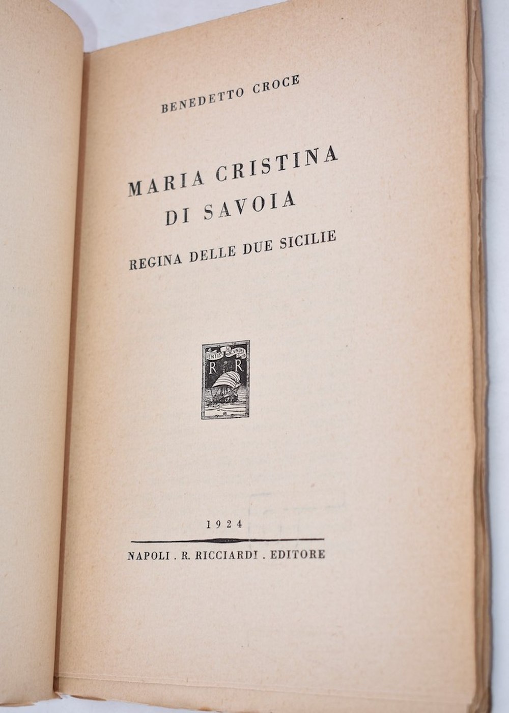 CROCE, Benedetto. MARIA CRISTINA DI SAVOIA. REGINA DELLE DUE SICILIE. 1924.
