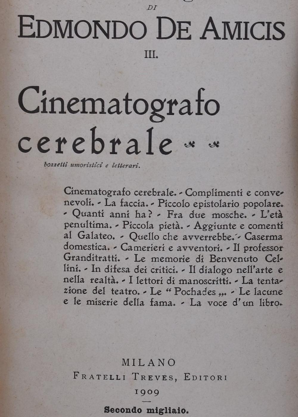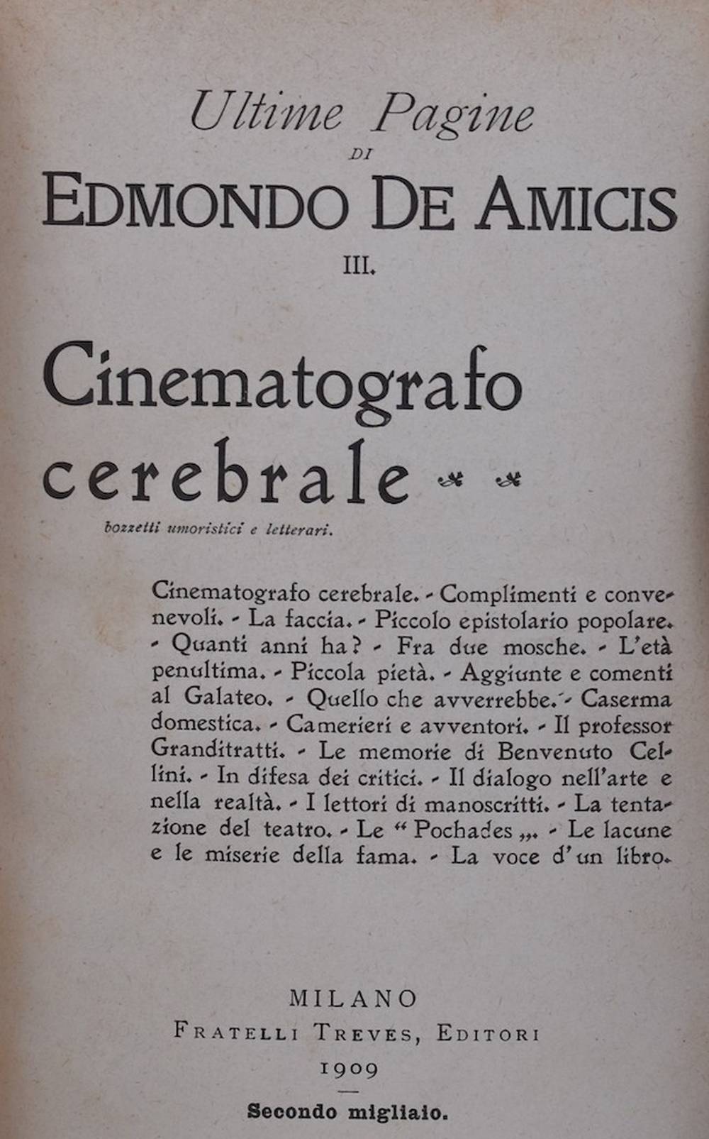 DE AMICIS, Edmondo. CINEMATOGRAFO CEREBRALE. 1909.