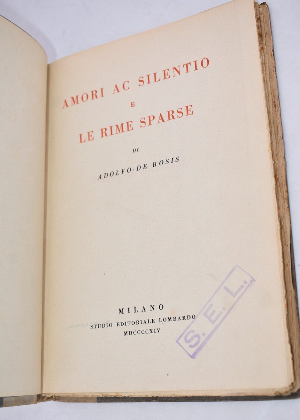 DE BOSIS, Adolfo. AMORI AC SILENTIO E LE RIME SPARSE. 1914.