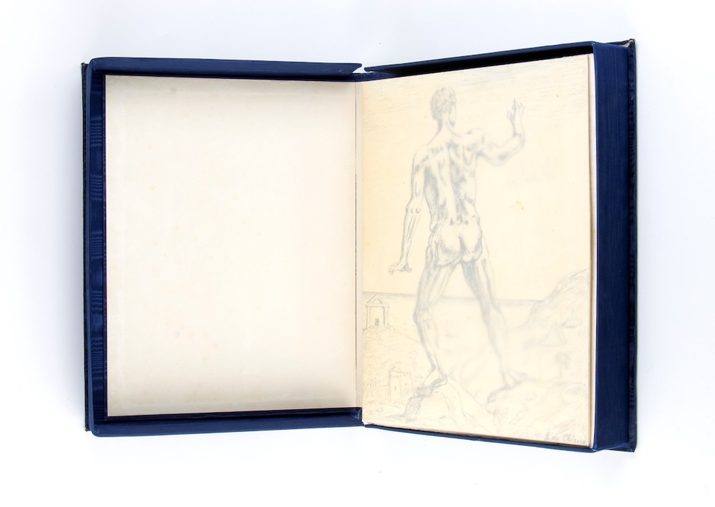 Cofanetto in tela blue contenente il volume nella sua brossura editoriale.