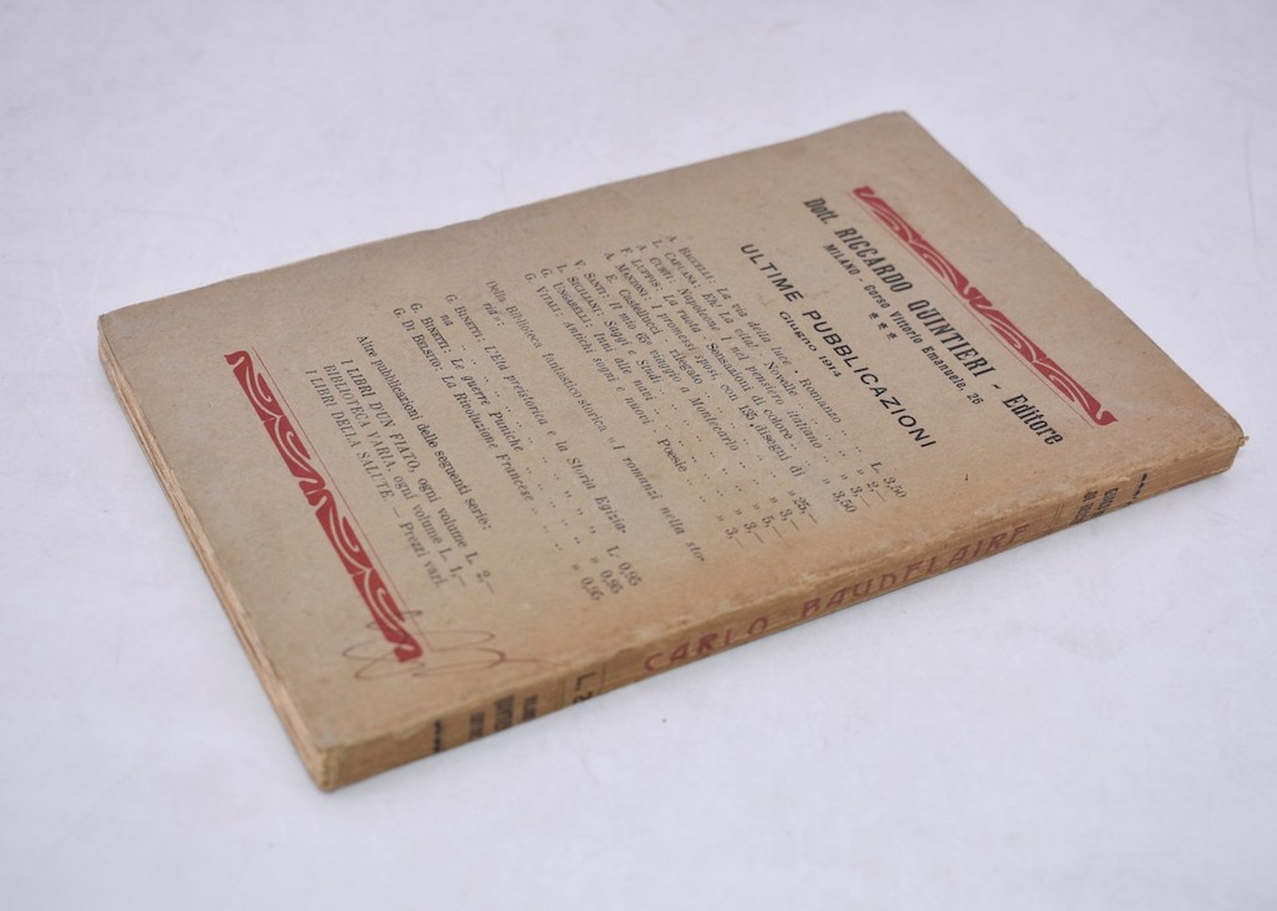 R. Quintieri, Milano. In-8º, mm. 190x125, pp. 120+tav. Brossura editoriale.