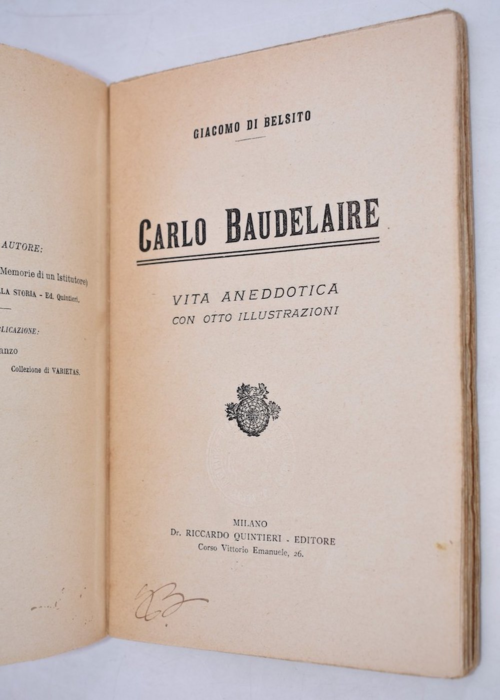 DI BELSITO, Giacomo. CARLO BAUDELAIRE. VITA ANEDDOTICA. 1914.
