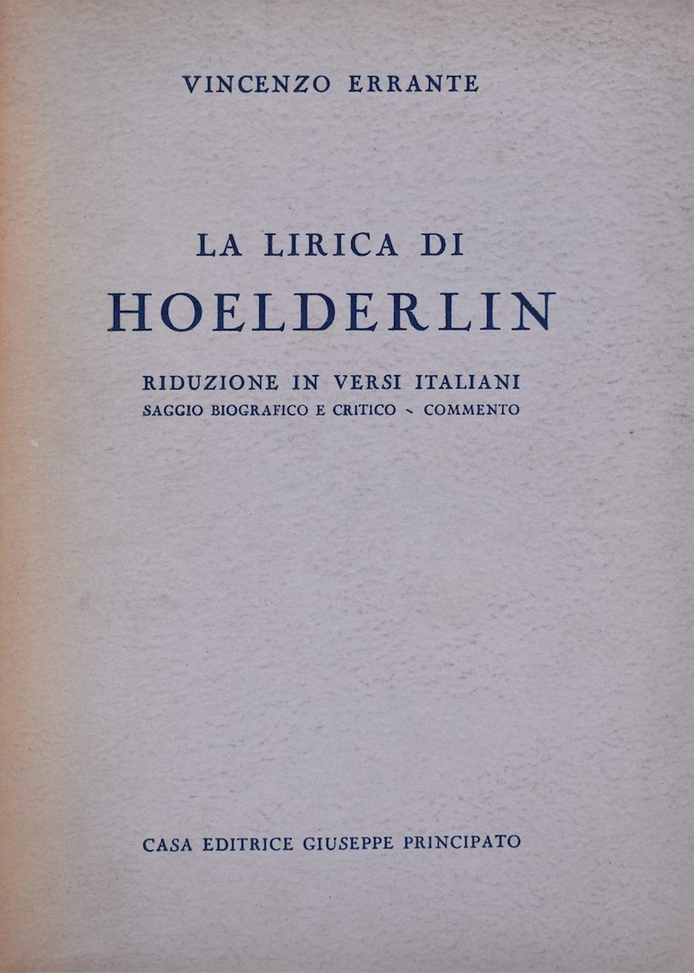 ERRANTE, Vincenzo. LA LIRICA DI HOELDERLIN. 1940.