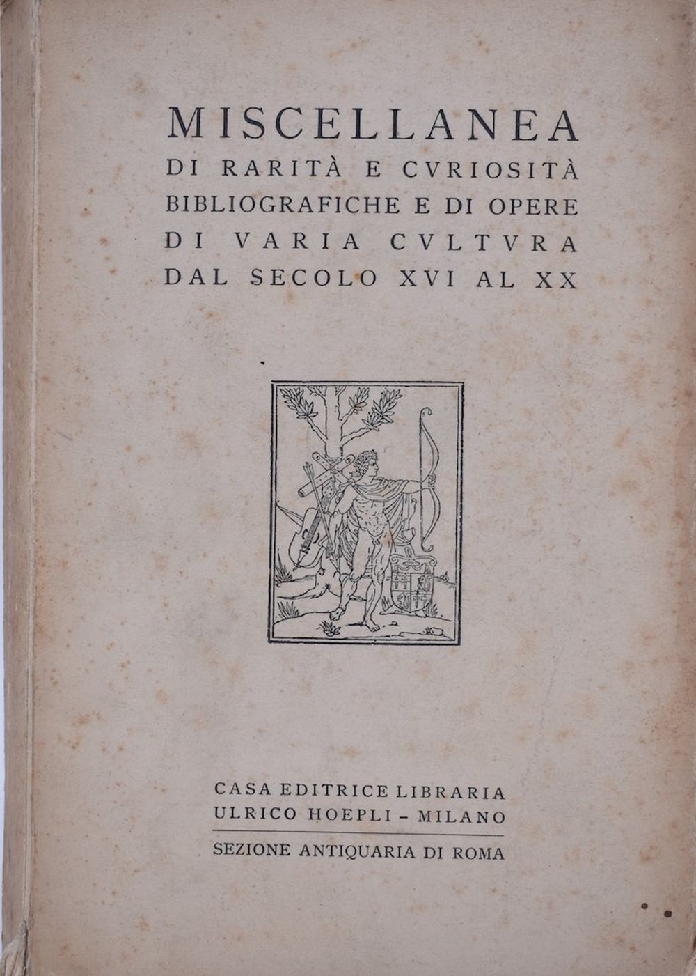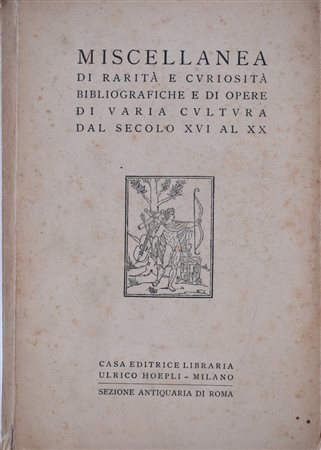 LIBRERIA ANTIQUARIA ULRICO HOEPLI MISCELLANEA DI RARITÀ E CURIOSITÀ BIBLIOGRAFICHE E DI OPERE DI VARIA CULTURA DAL SECOLO XVI AL XX. 1936.