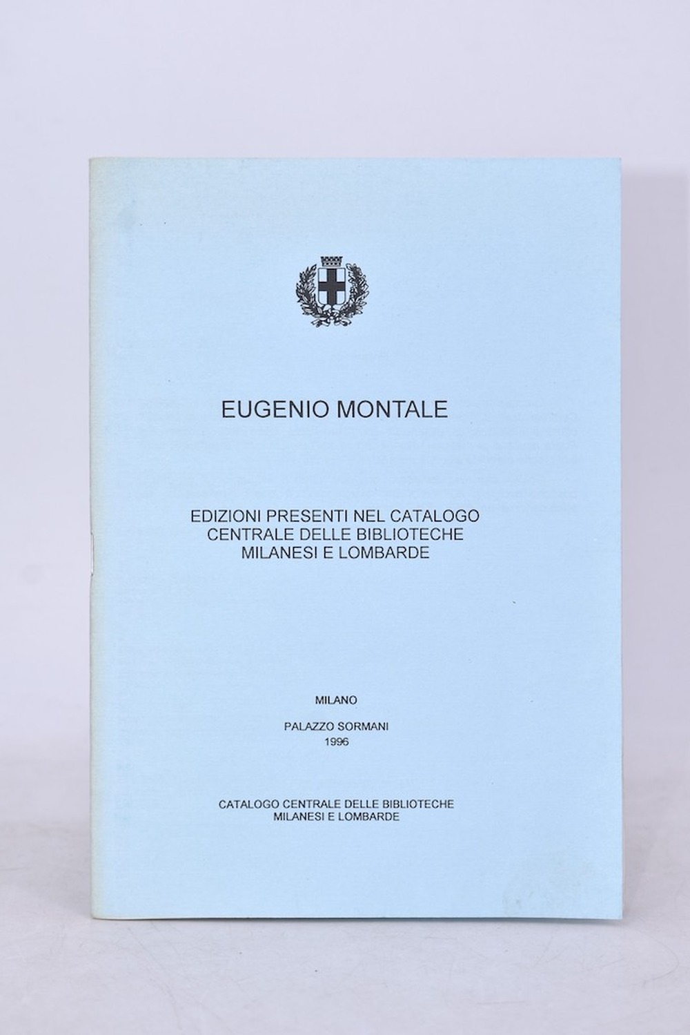 EUGENIO MONTALE. EDIZIONI PRESENTI NEL CATALOGO CENTRALE DELLE BIBLIOTECHE MILANESI E LOMBARDE. PALAZZO SORMANI. 1996.