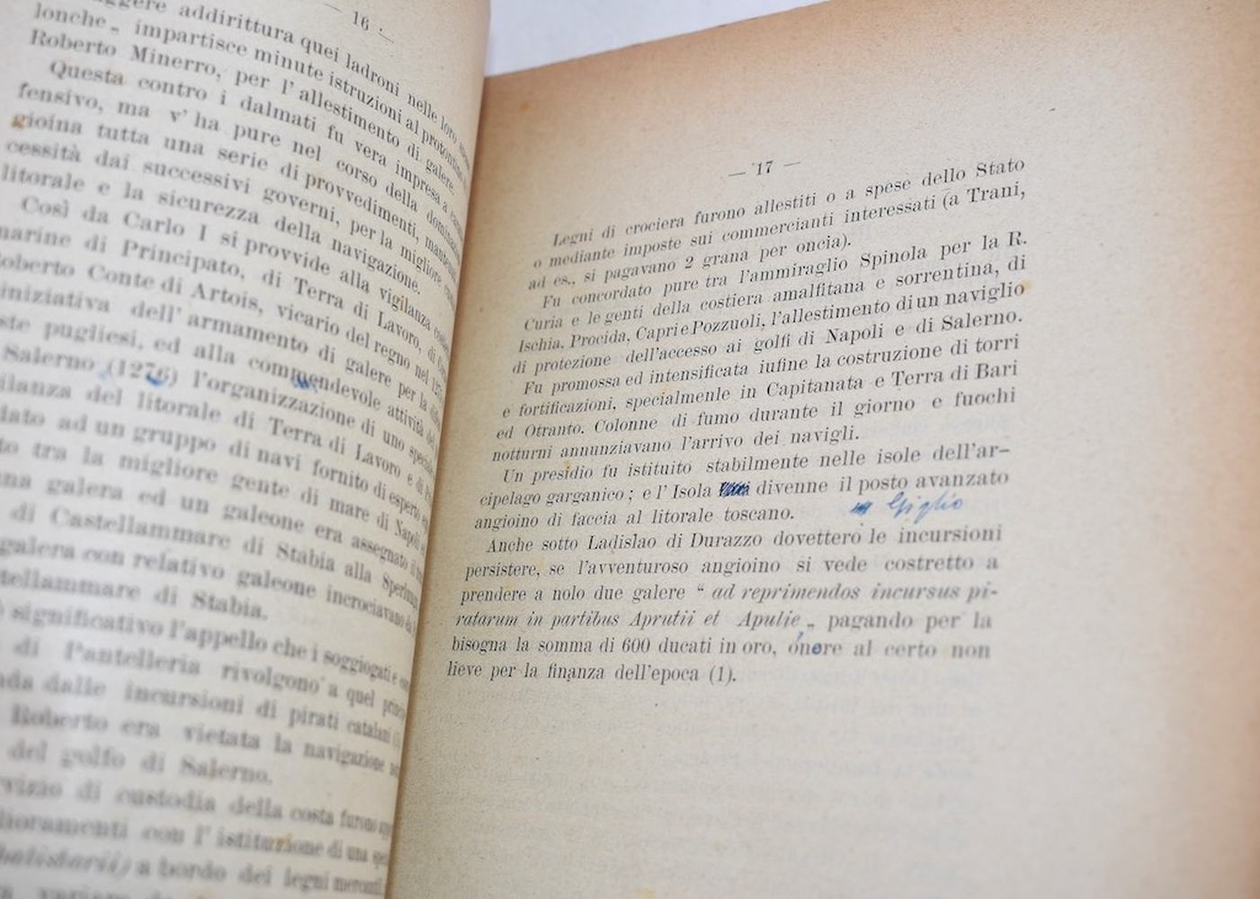 Prima edizione di un raro trattato storico sulla pirateria, con dedica dell'autore a Roberto Minervini apposta al piatto. Esemplare con testo intonso, difetti in copertina.