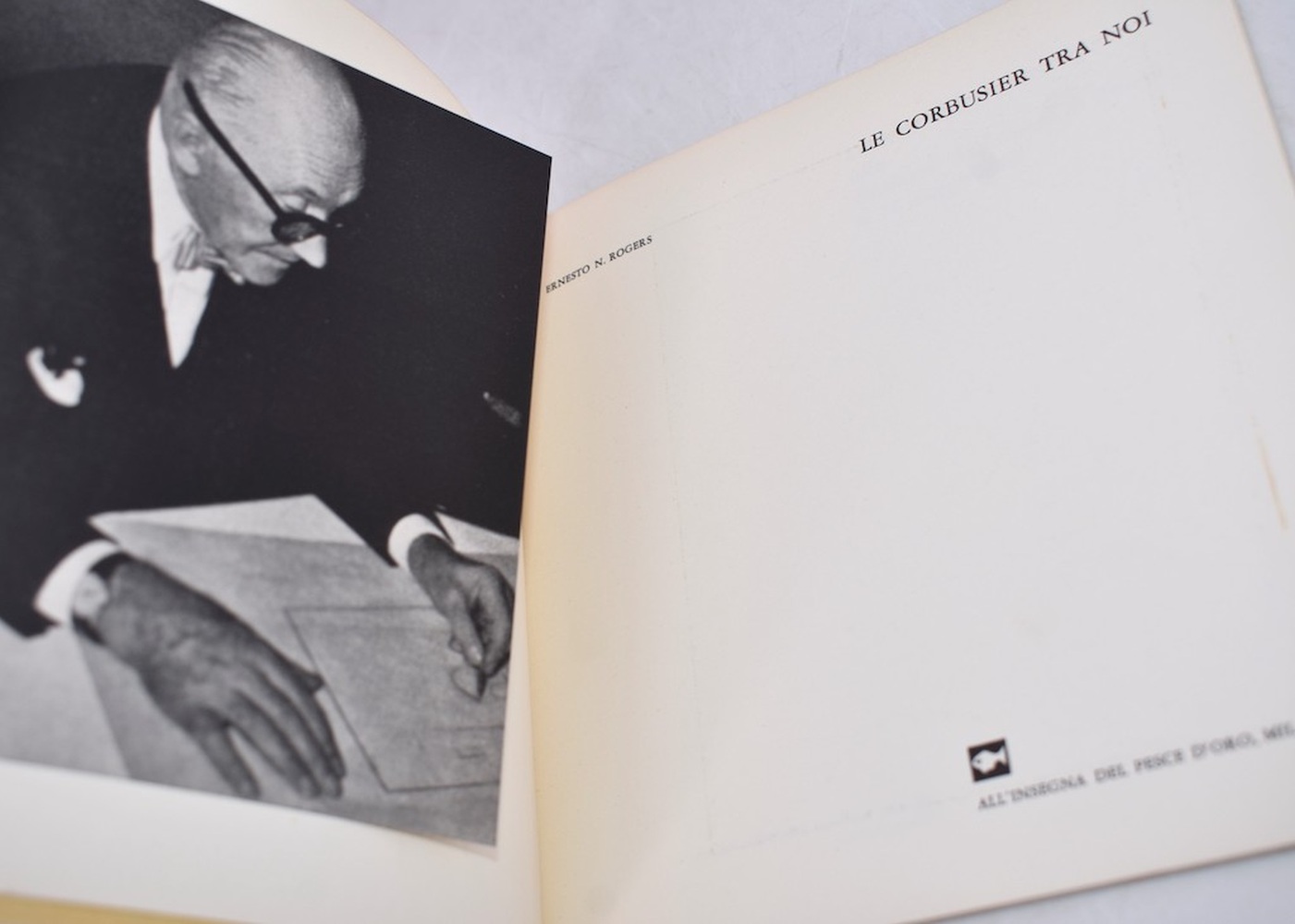 Prima edizione, tiratura di 1500 copie n.n. Brossura editoriale con ill. al piatto e ritratto di Le Corbusier appl. in antiporta. Testo della Commemorazione tenuta alla Facoltà di Architettura di Milano il 26 maggio 1966.