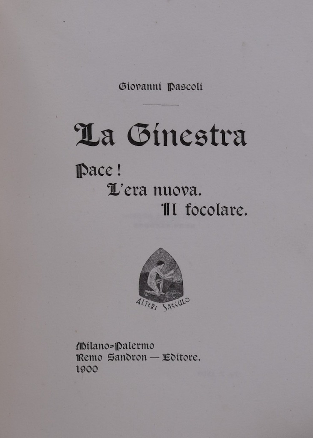 PASCOLI, Giovanni. LA GINESTRA. PACE! L'ERA NUOVA. IL FOCOLARE. 1900.