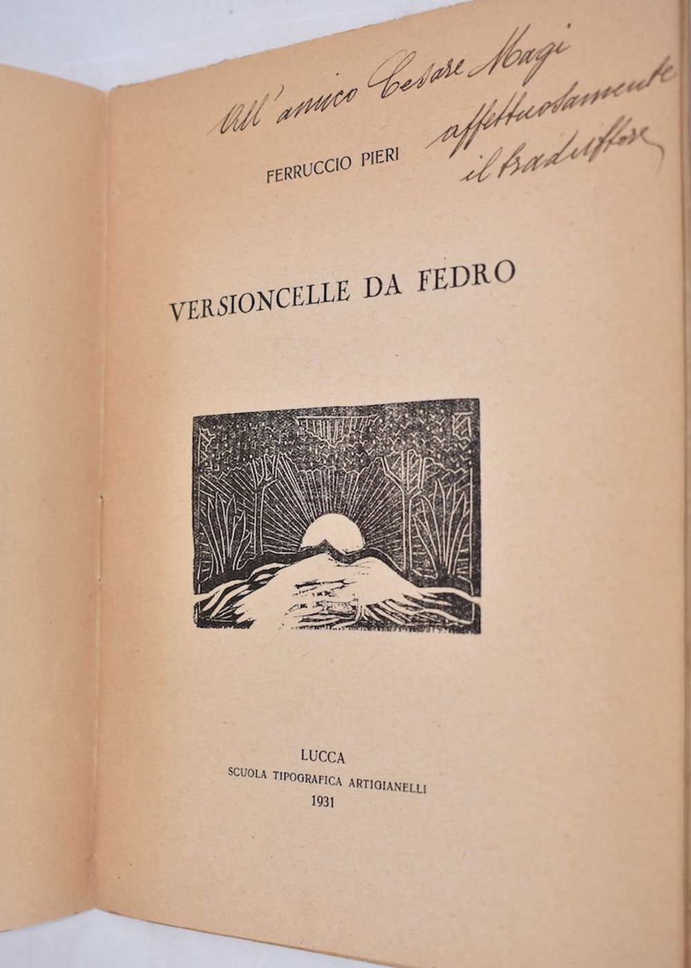 PIERI, Ferruccio. VERSIONCELLE DA FEDRO. 1931.