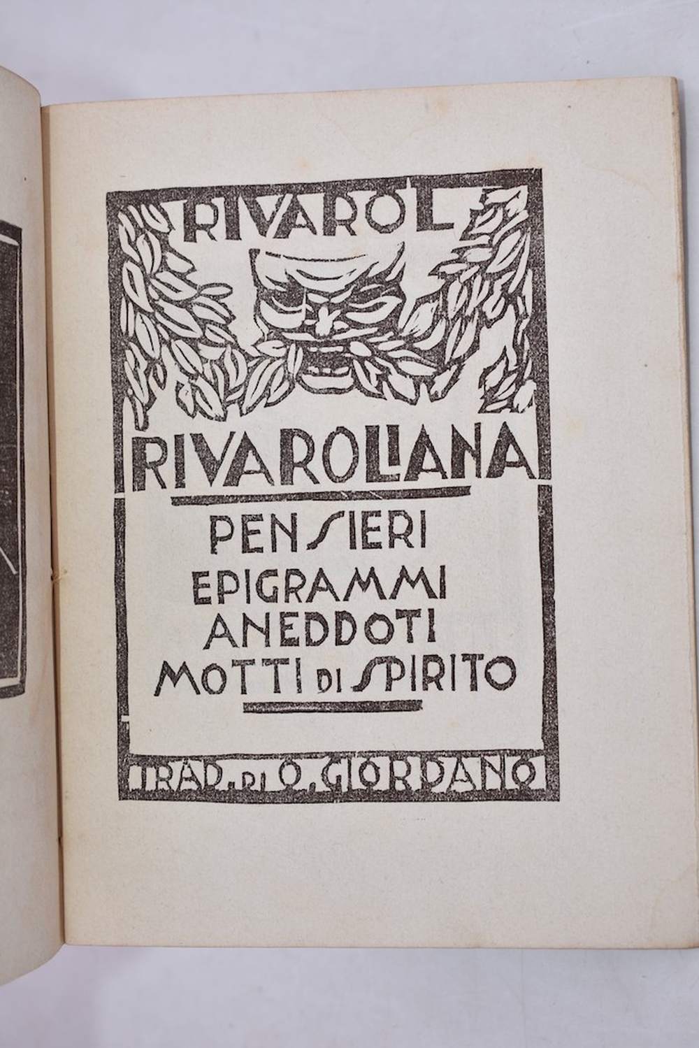 RIVAROL. RIVAROLIANA. PENSIERI, EPIGRAMMI, ANEDDOTI, MOTTI DI SPIRITO. 1920.