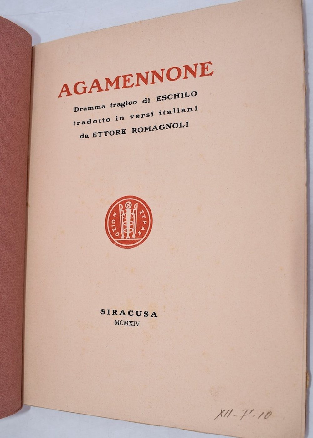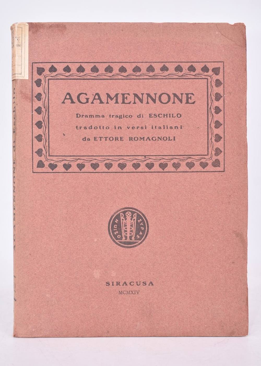 ROMAGNOLI, Ettore (a cura di). AGAMENNONE DI ESCHILO. DRAMMA TRAGICO. 1914.