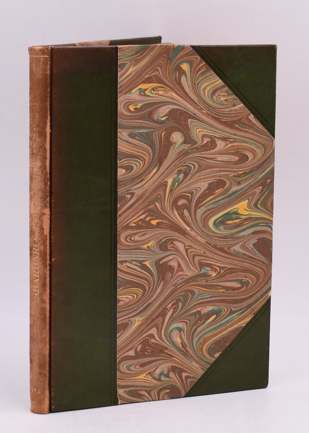 Primissima edizione per la Libreria della Voce stampata a spese della sorella Clelia, con titolo consigliato da Giovanni Papini. Legatura artistica in mezzo marocchino con angoli e titoli in oro al dorso, con la brossura conservata. Esemplare con firma di possesso alla prima c.b. allentata.