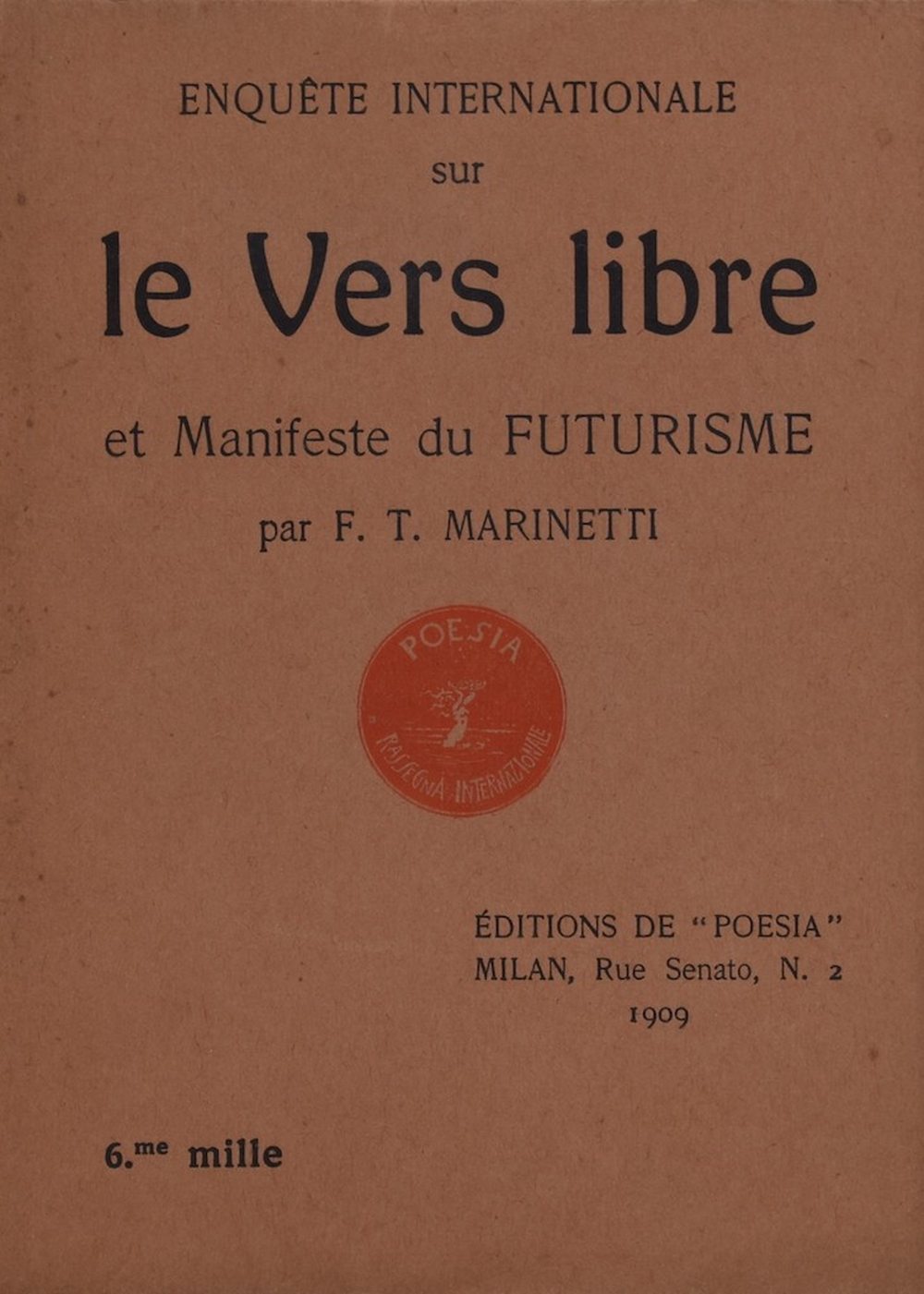 MARINETTI, Filippo Tommaso. ENQUETE INTERNATIONALE SUR LE VERS LIBRE/MANIFEST DU FUTURISME. 1909.