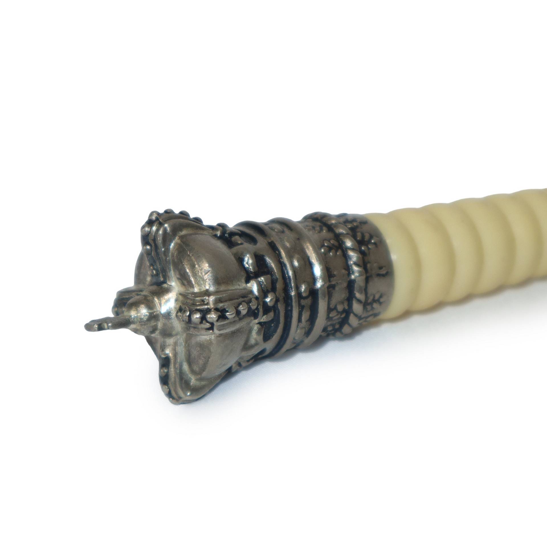 Lente di ingrandimento con manico in osso e estremità a forma di corona in argento, primi 20° secolo cm 24