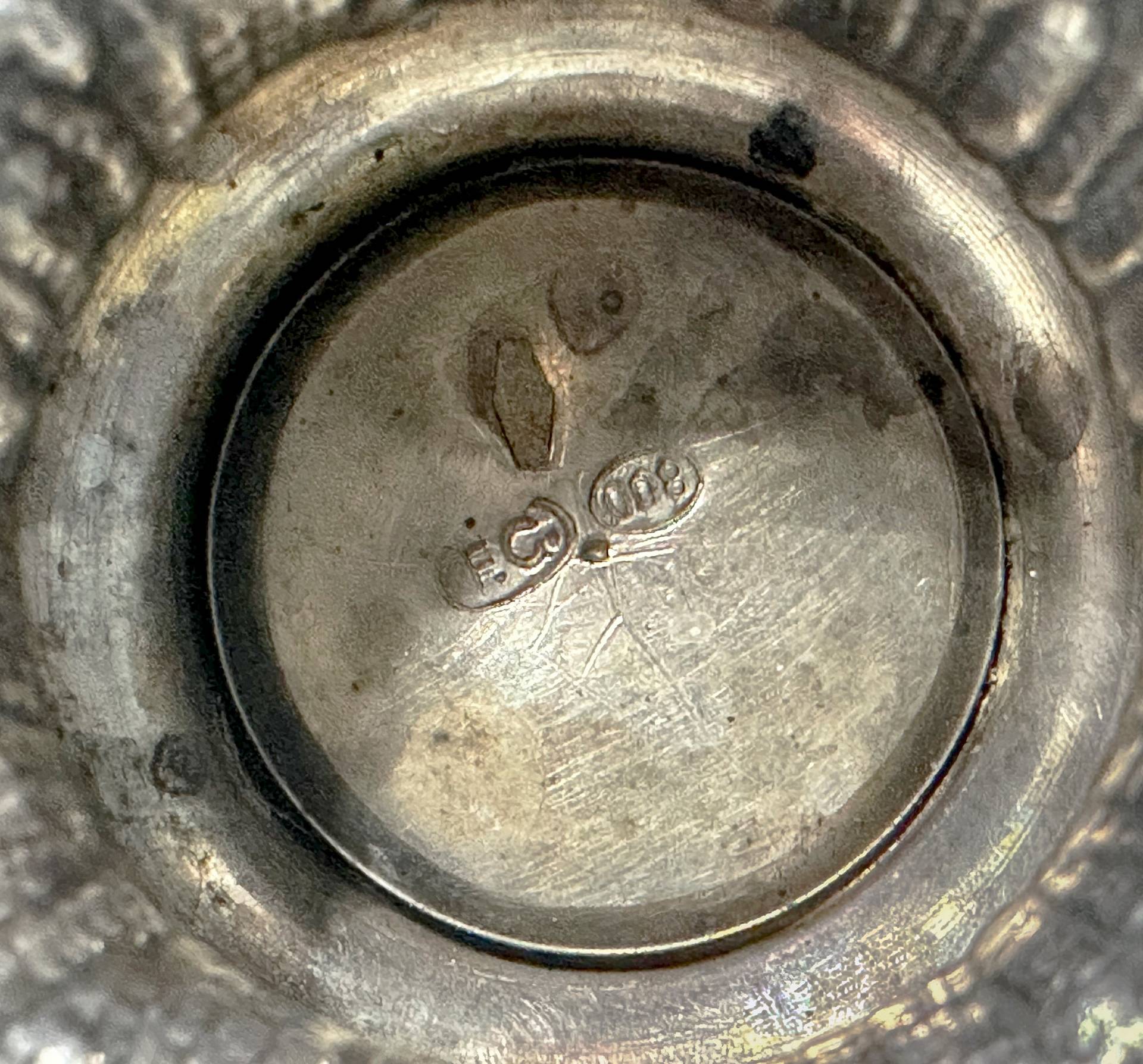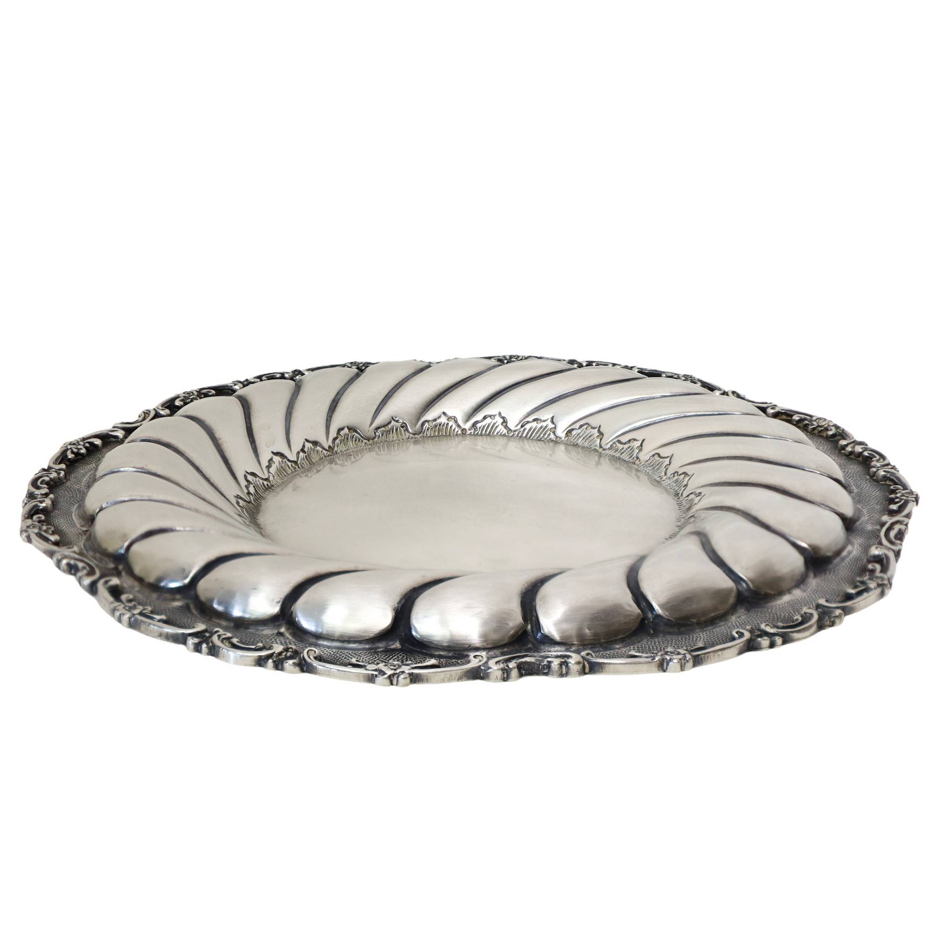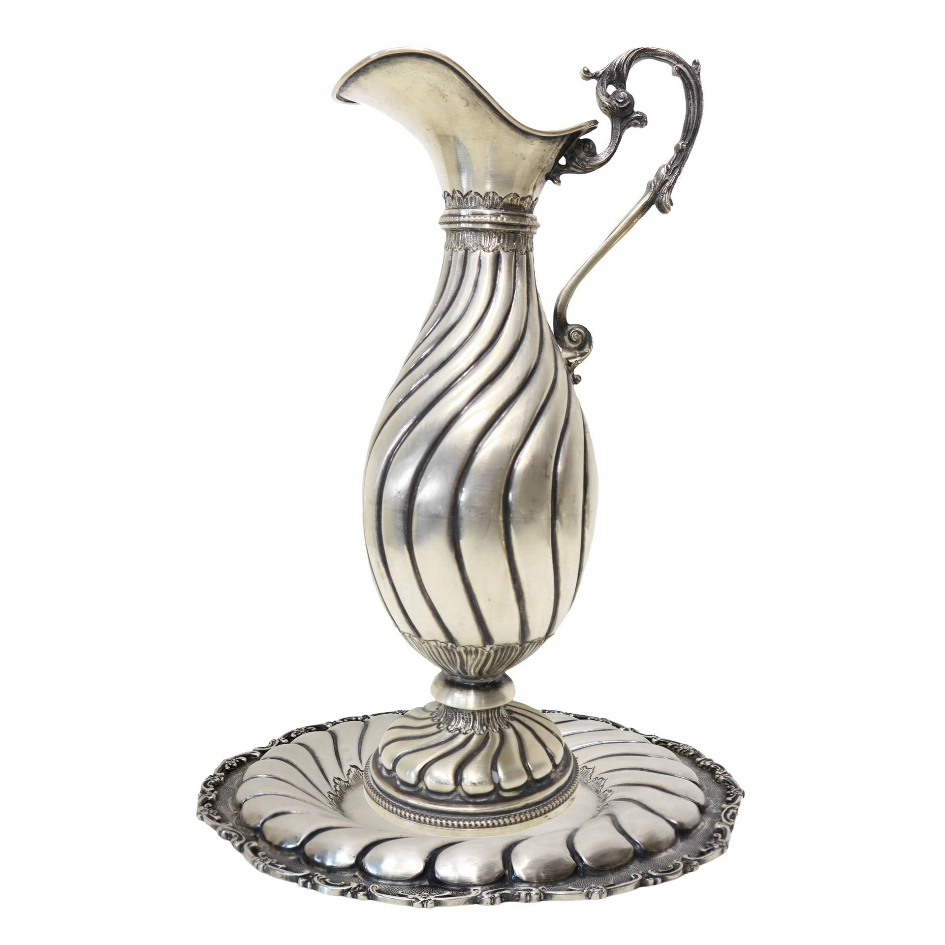 Anfora con manico sbalzata a lobi curvilinee su piatto
