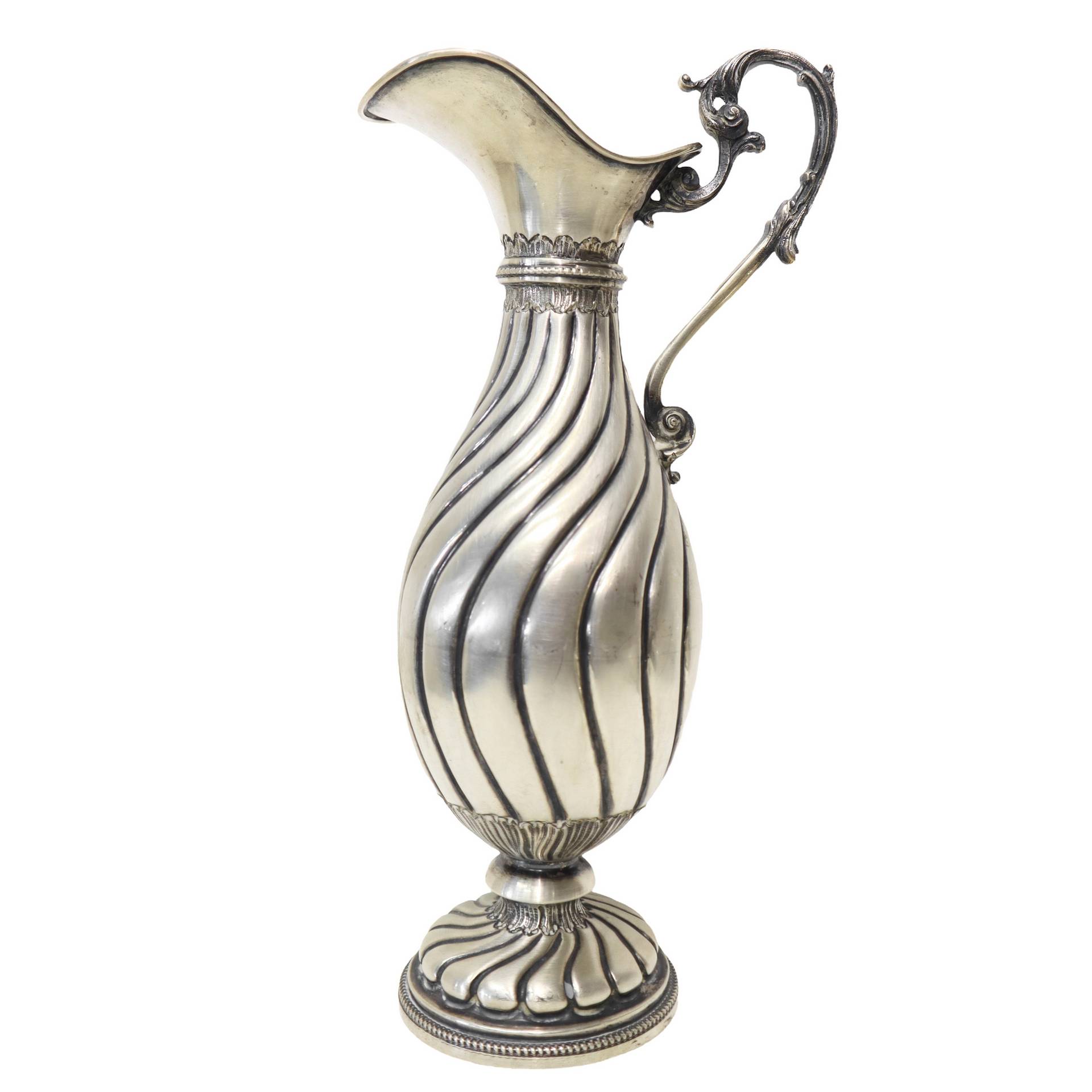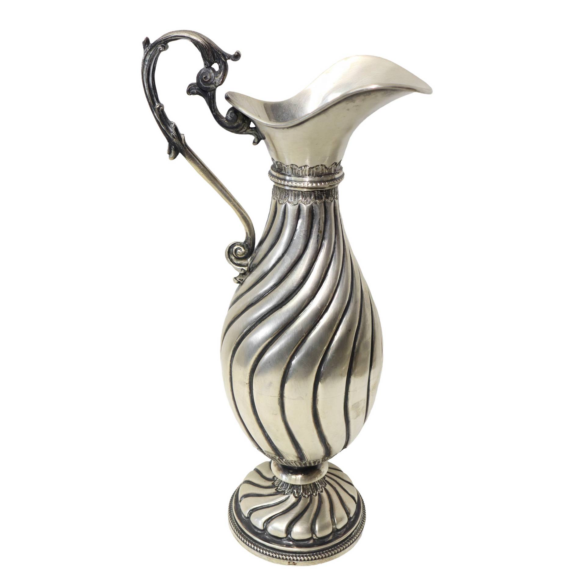Anfora con manico sbalzata a lobi curvilinee su piatto Anfora H cm 32, ,gr 1108
