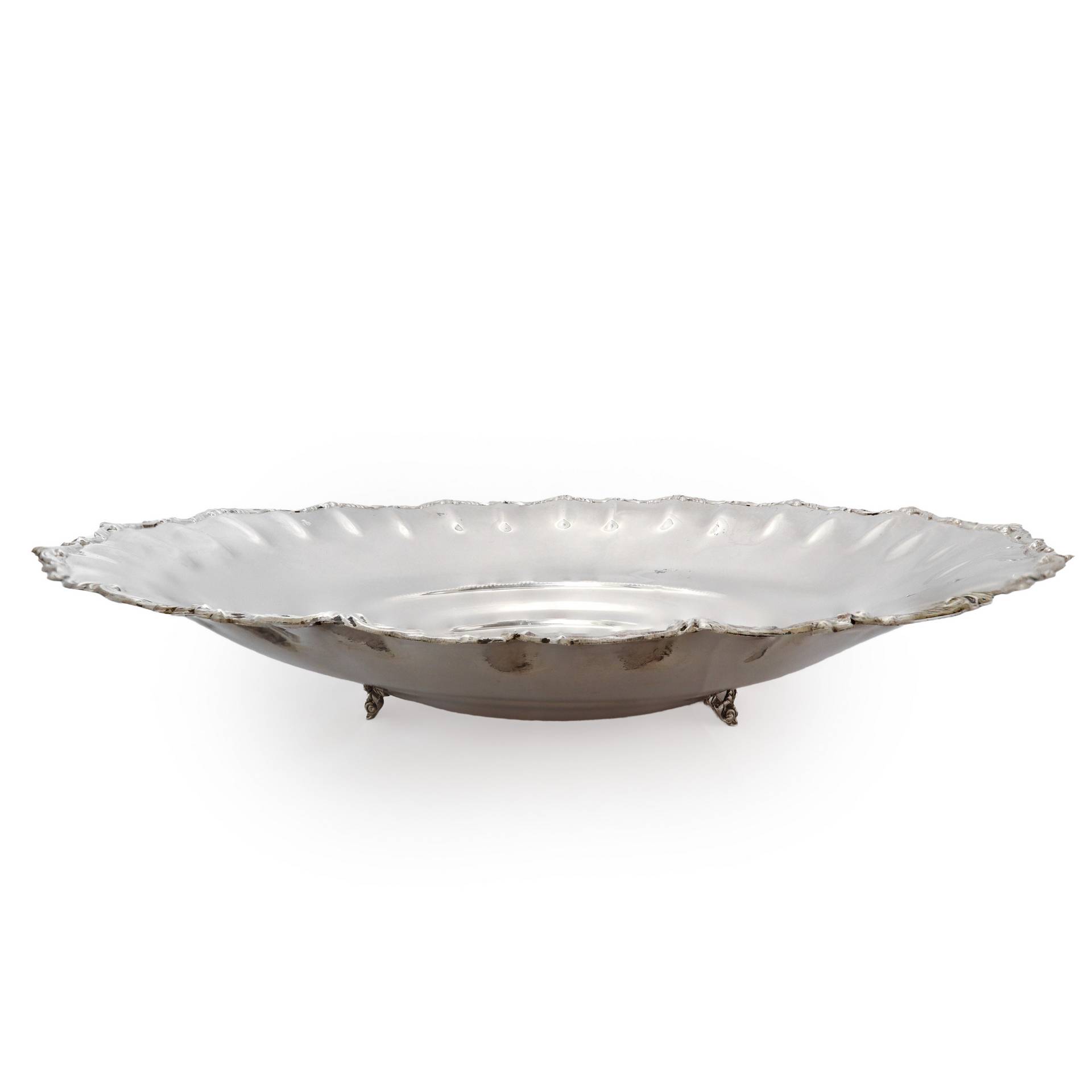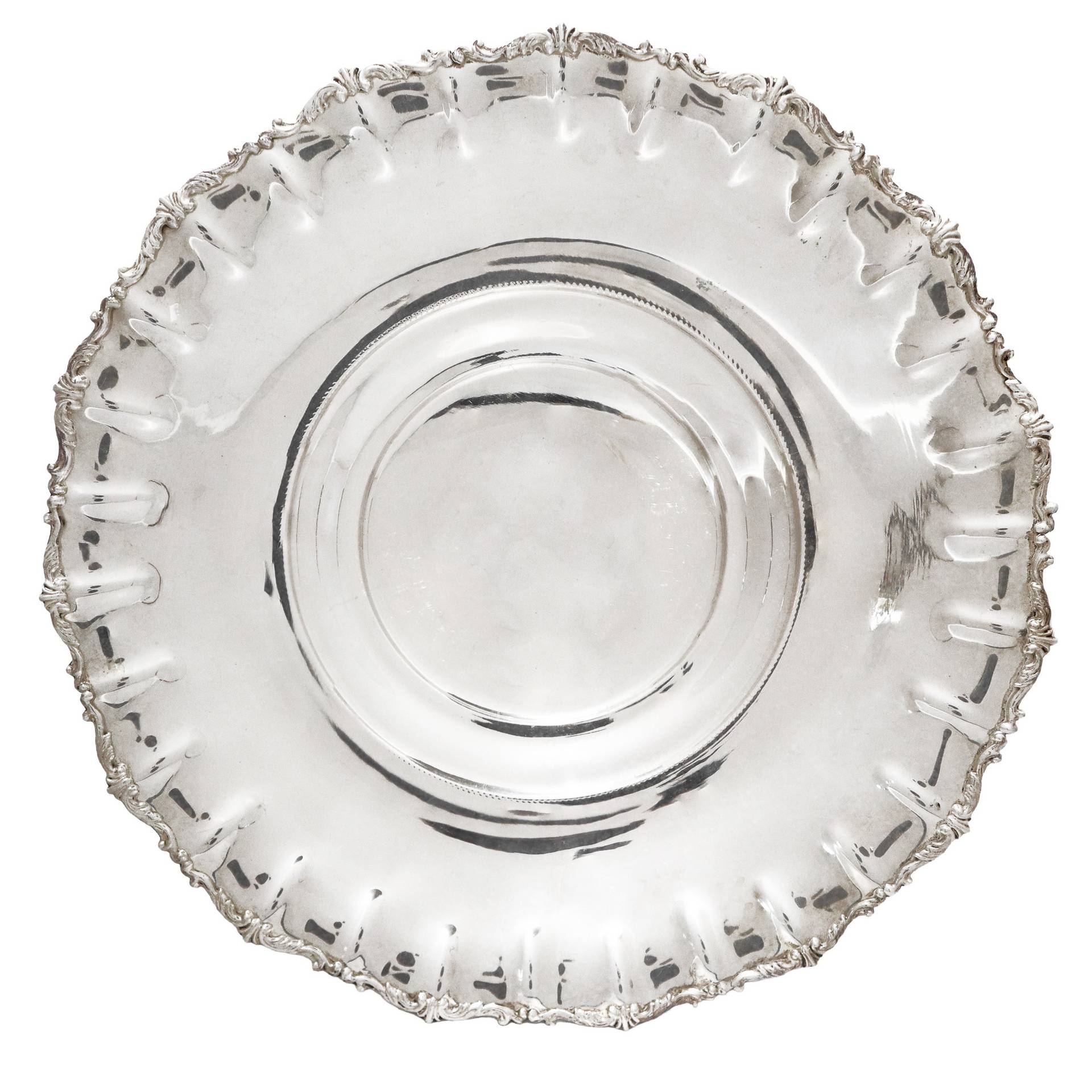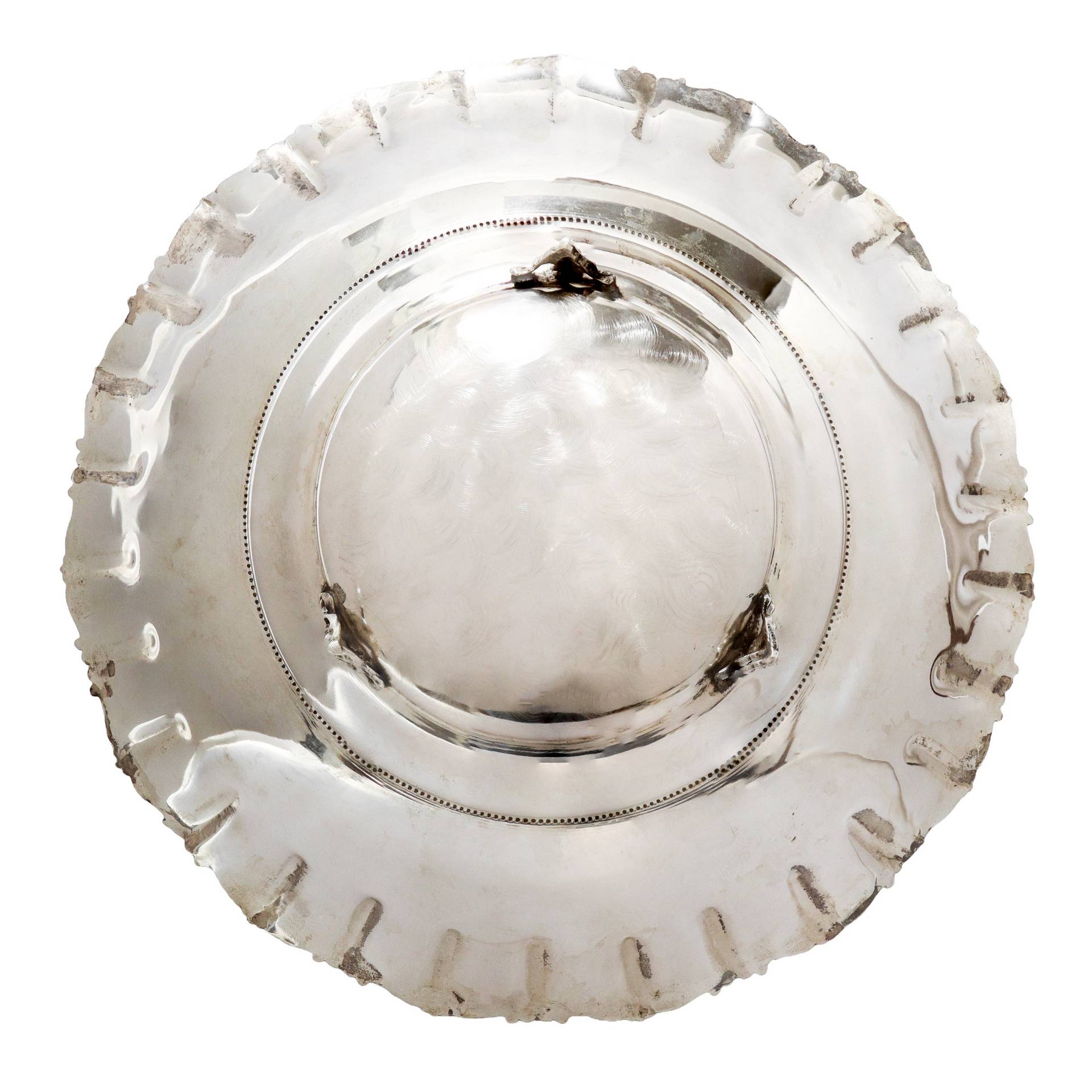 Centrotavola in argento 800, 1941 Diametro cm 35, Gr 451 Bordo smerlettato Bordo smerlettato