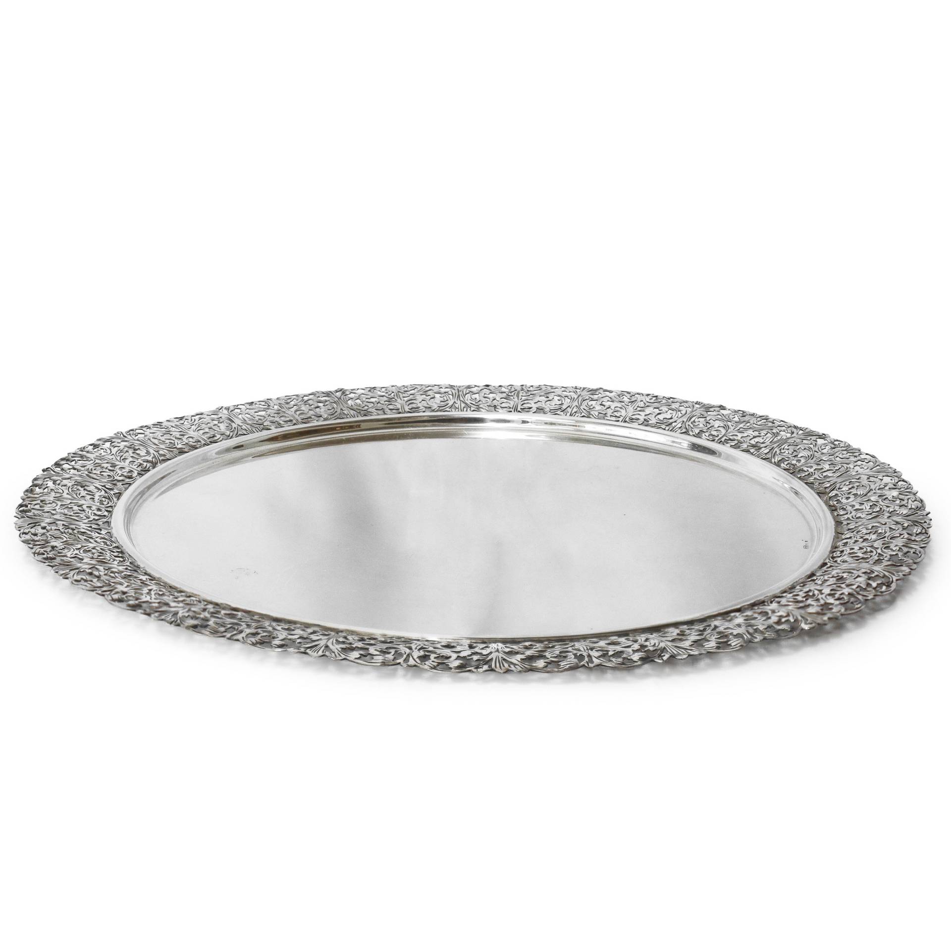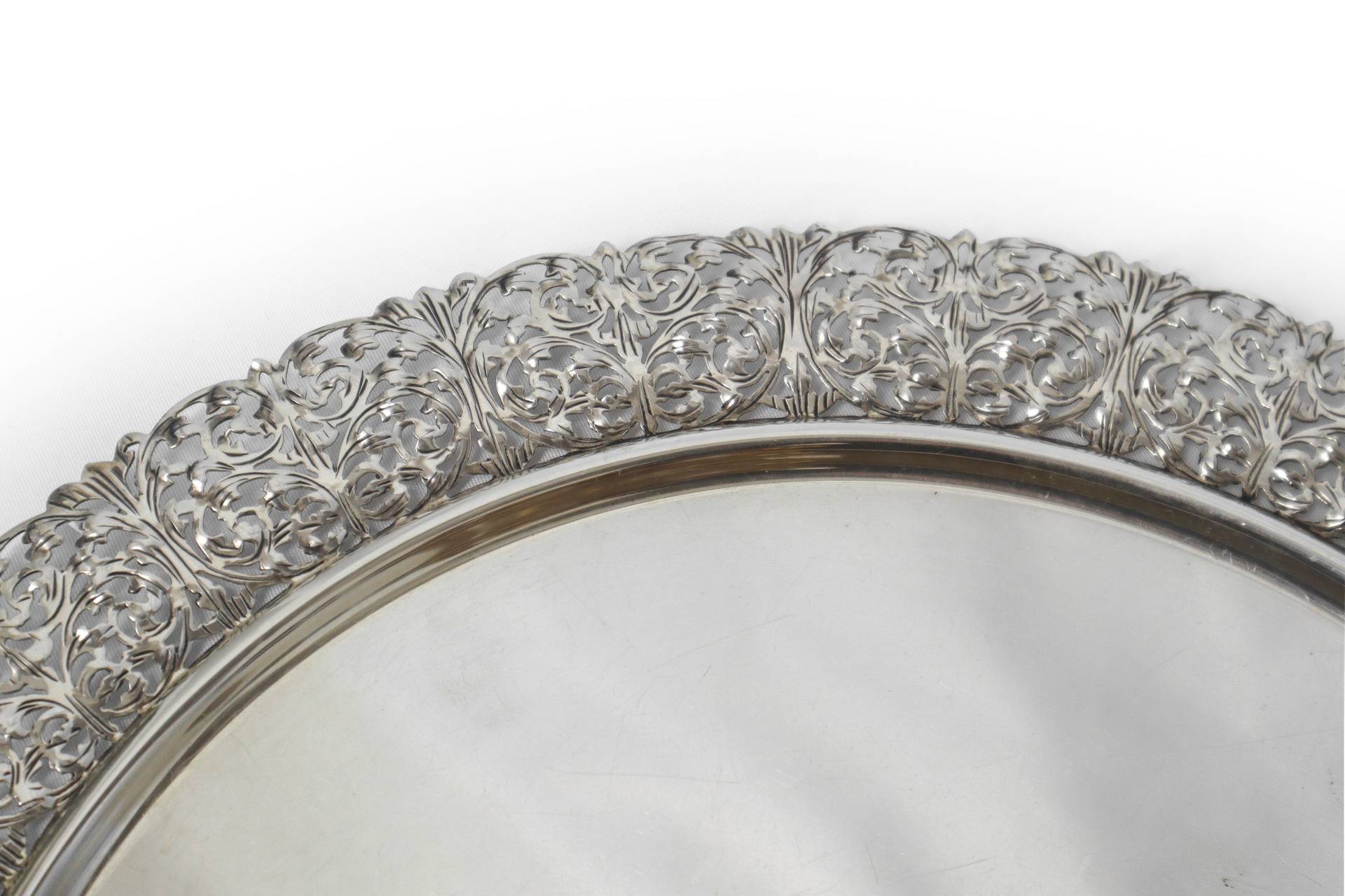 Vassoio rotondo in argento 800, bordo filigranato Diametro 29, Gr 395