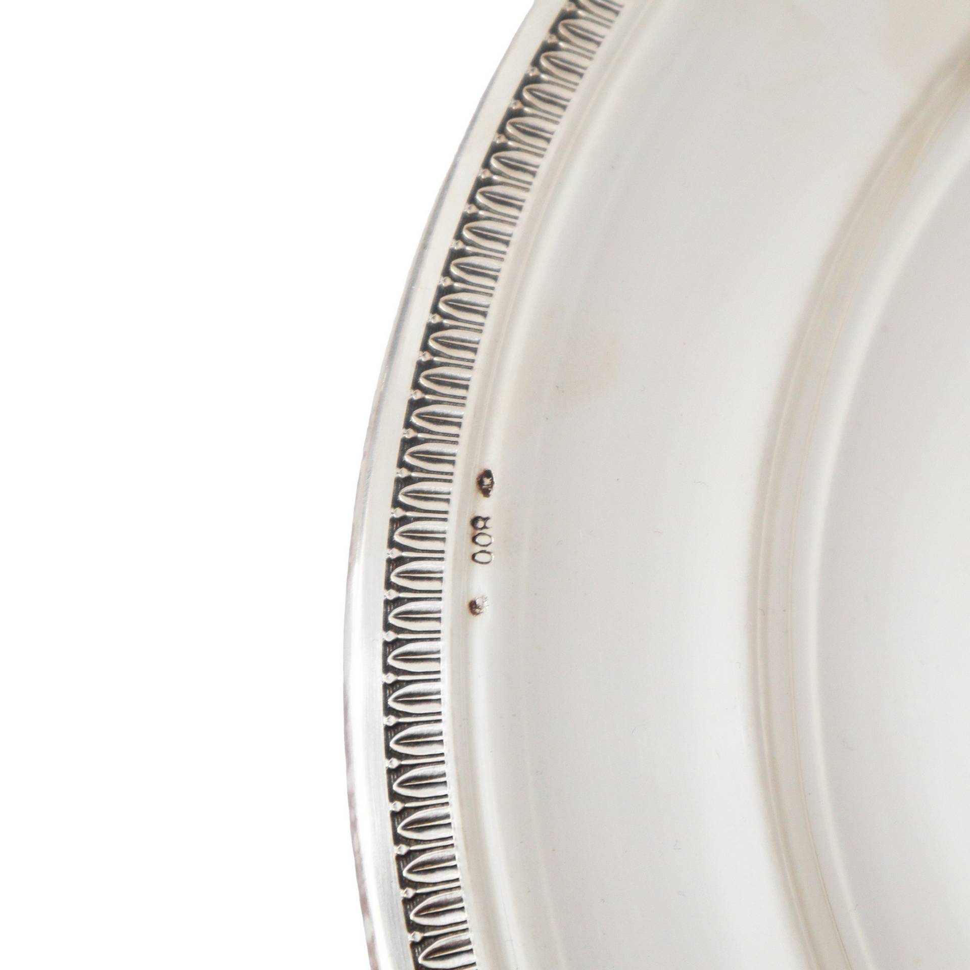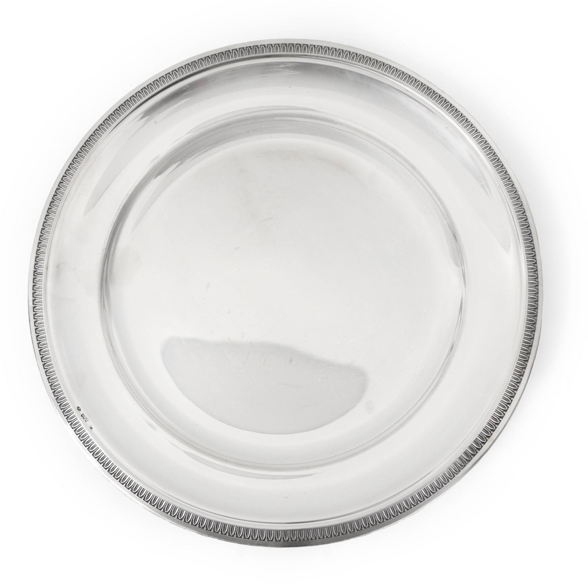 Vassoio rotondo con bordo bulinato e lanceolato gr 408 - diam. cm 28