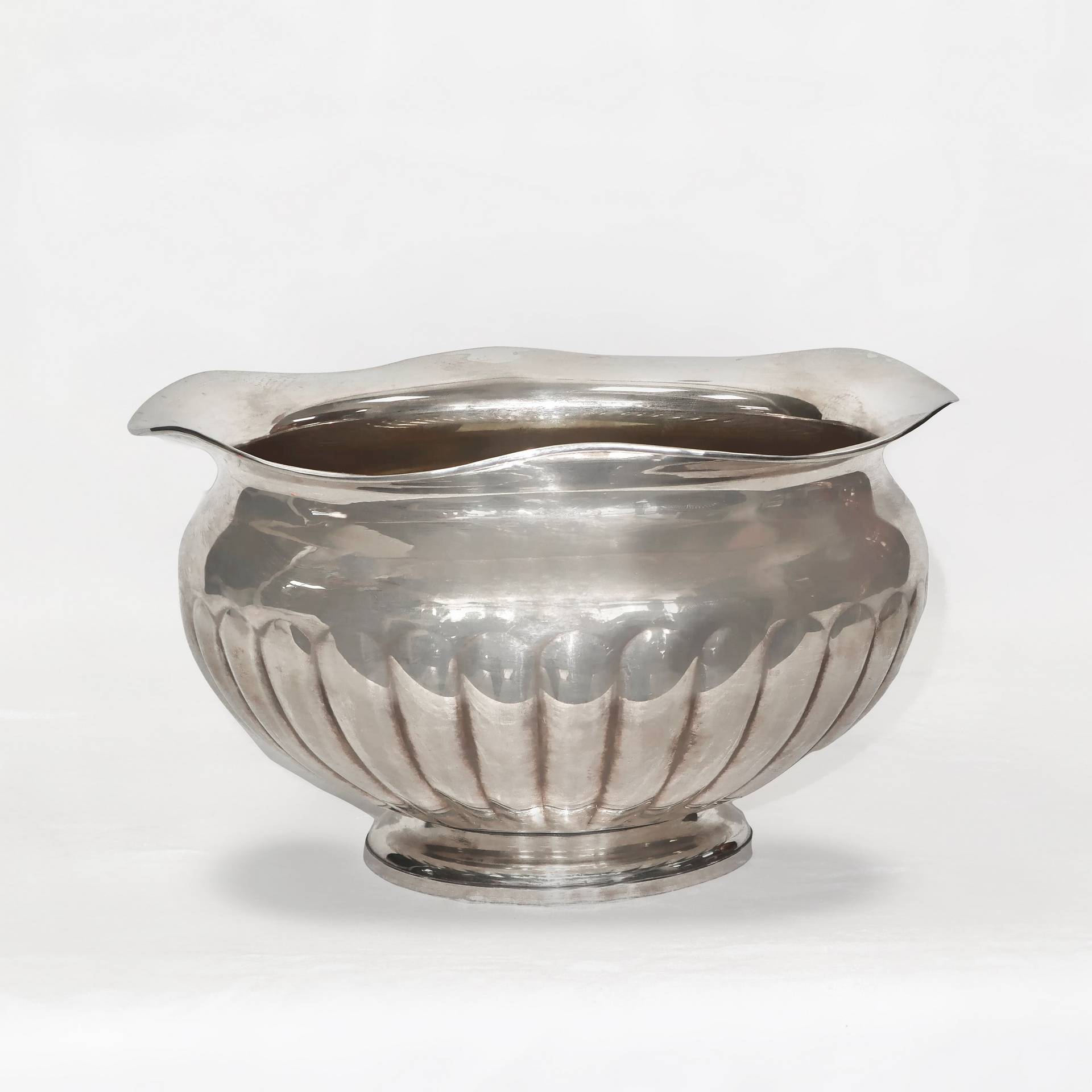 Centrotavola a coppa in argento, con decorazioni sbalzate a lobi.