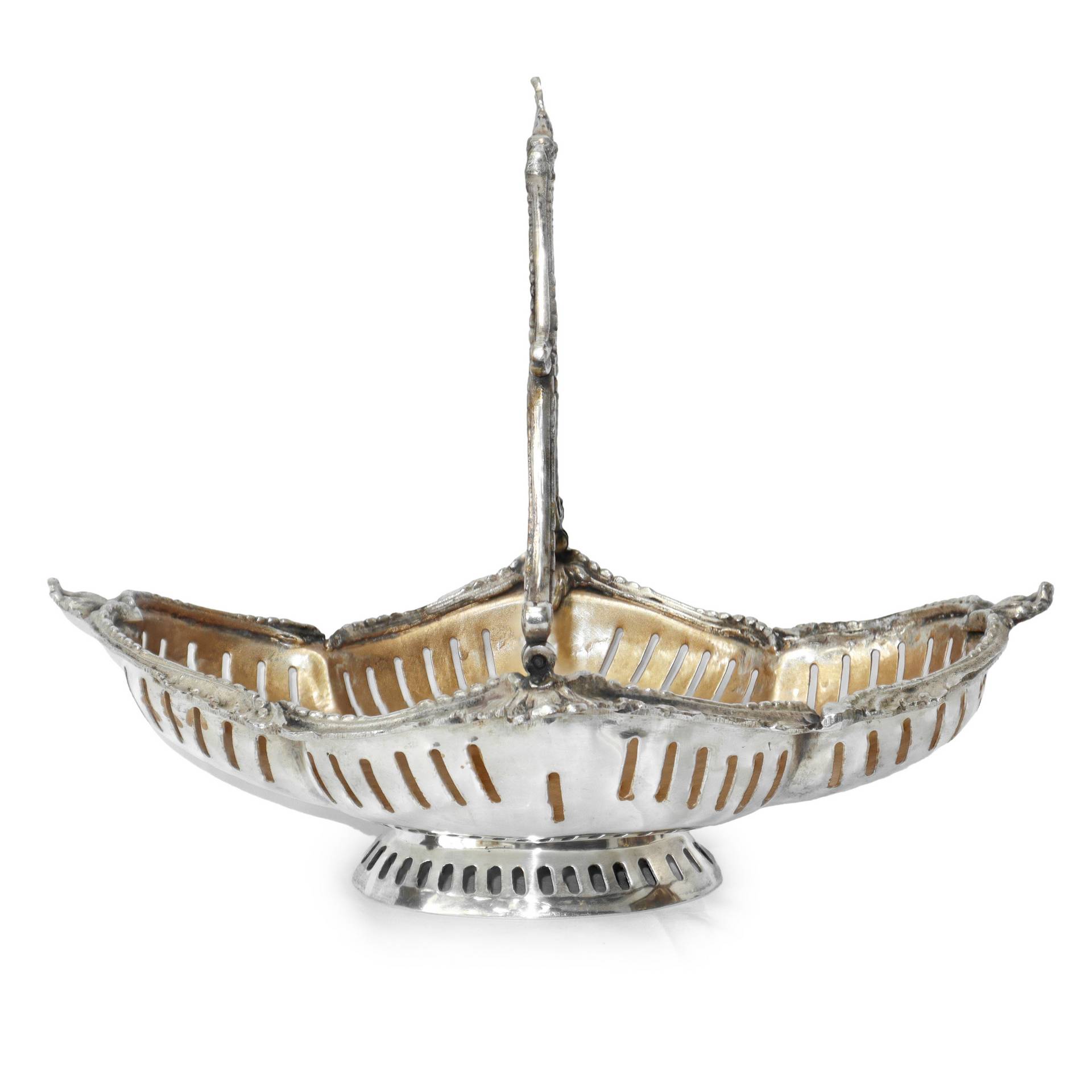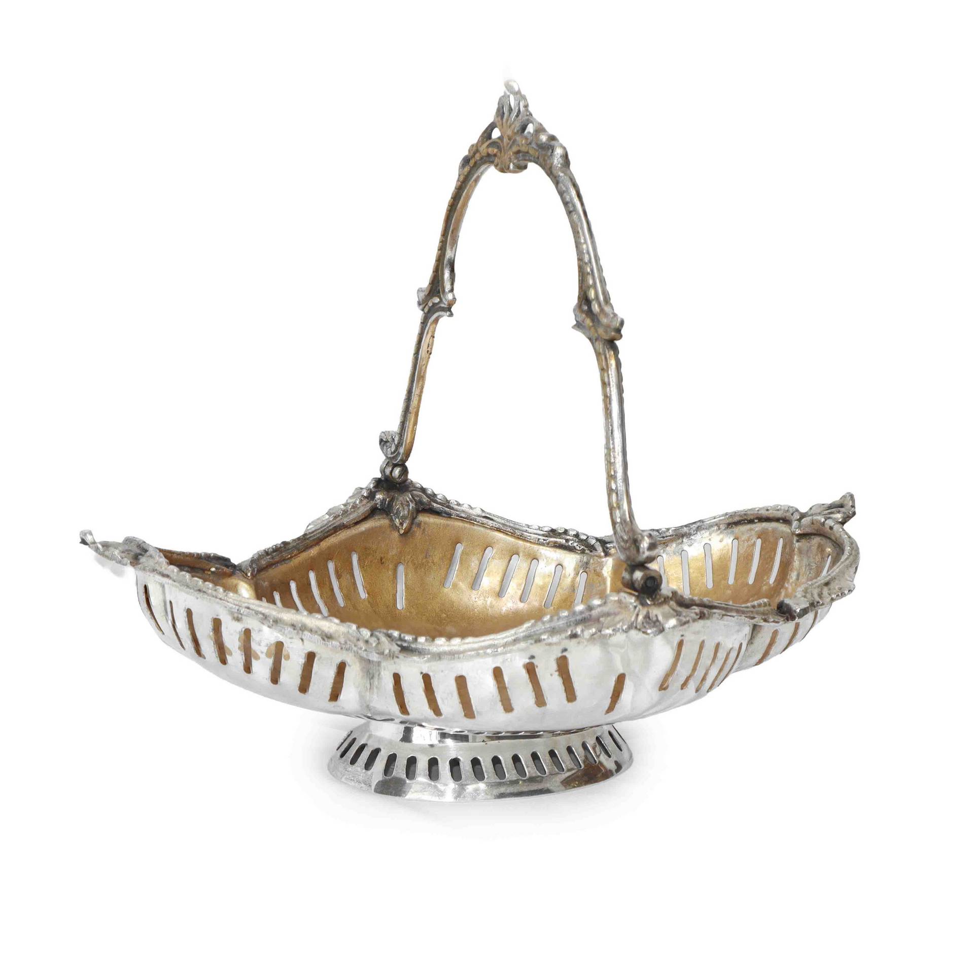 Cestello - fruttiera in metallo argentato. Fine ‘800, End of ° e 19° secolo H cm 9x34x26 Con interno dorato. Punzonato Museum.Con interno dorato. Punzonato Museum.