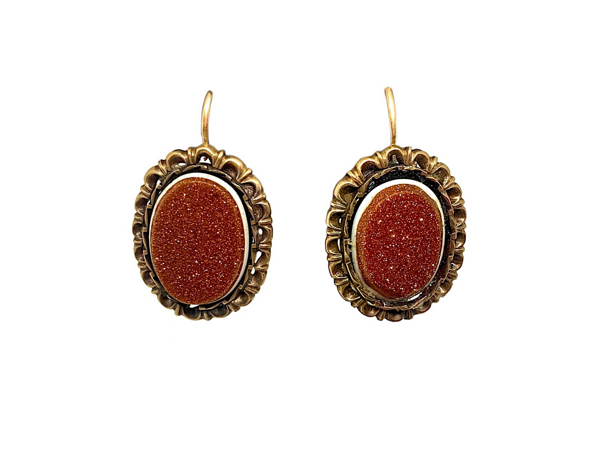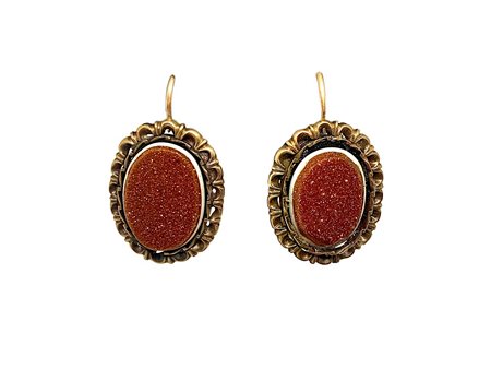 Orecchini in oro a titolo basso Con pietra avventurina. Punzonati.Con pietra avventurina. Punzonati.