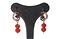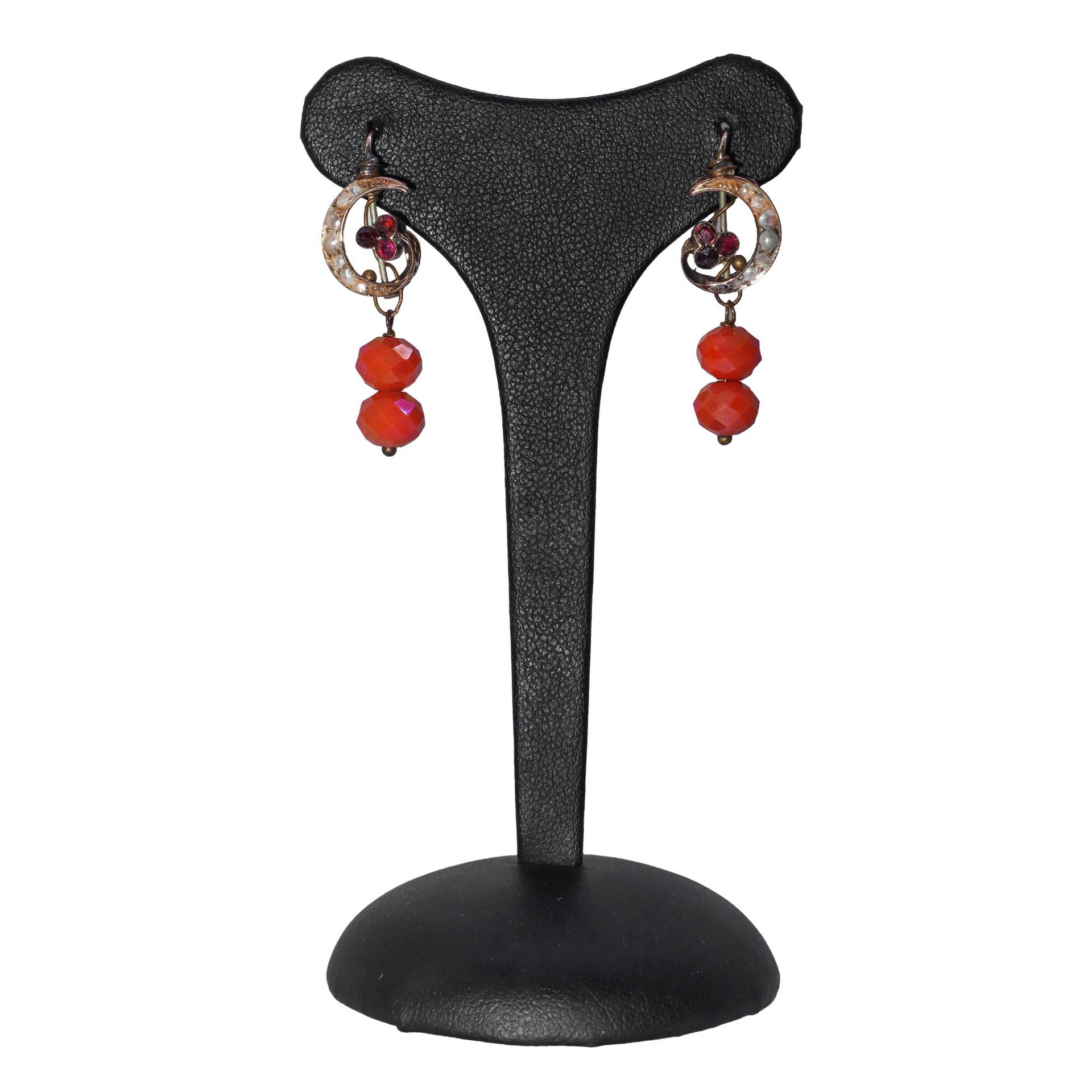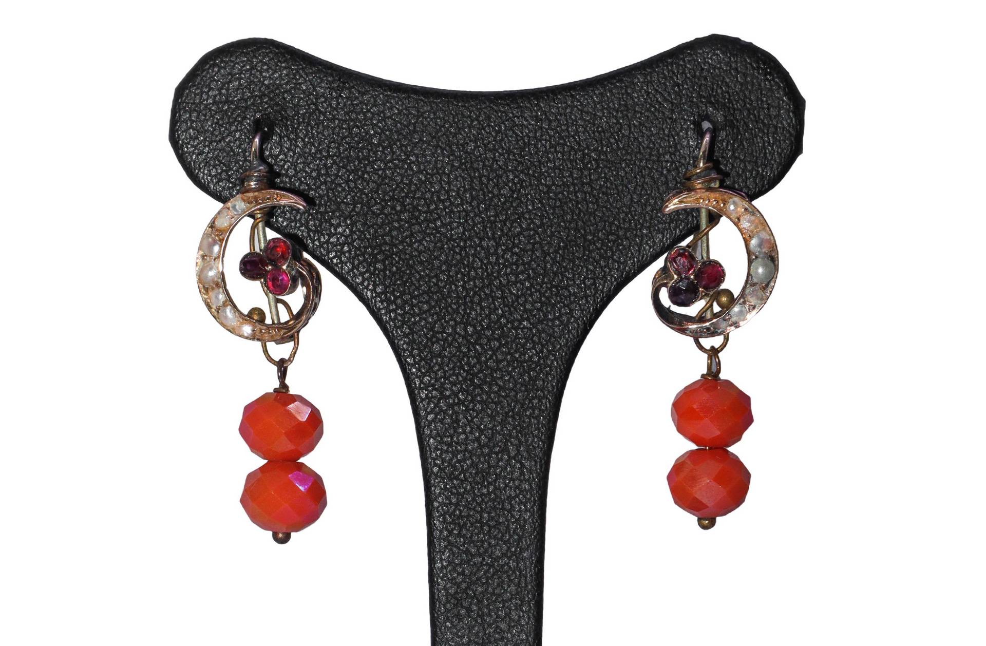 Orecchini in oro a mezzaluna con perline granati e pendenti in corallo sfaccettato, primi 20° secolo