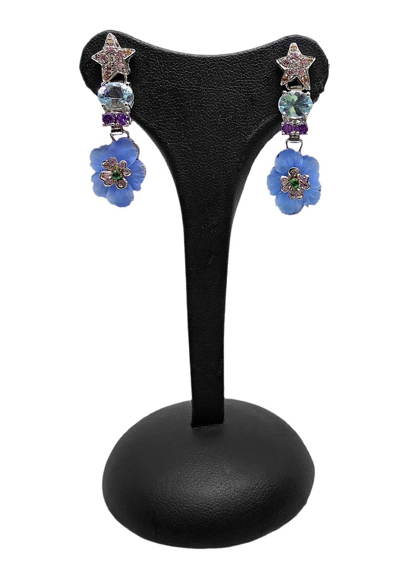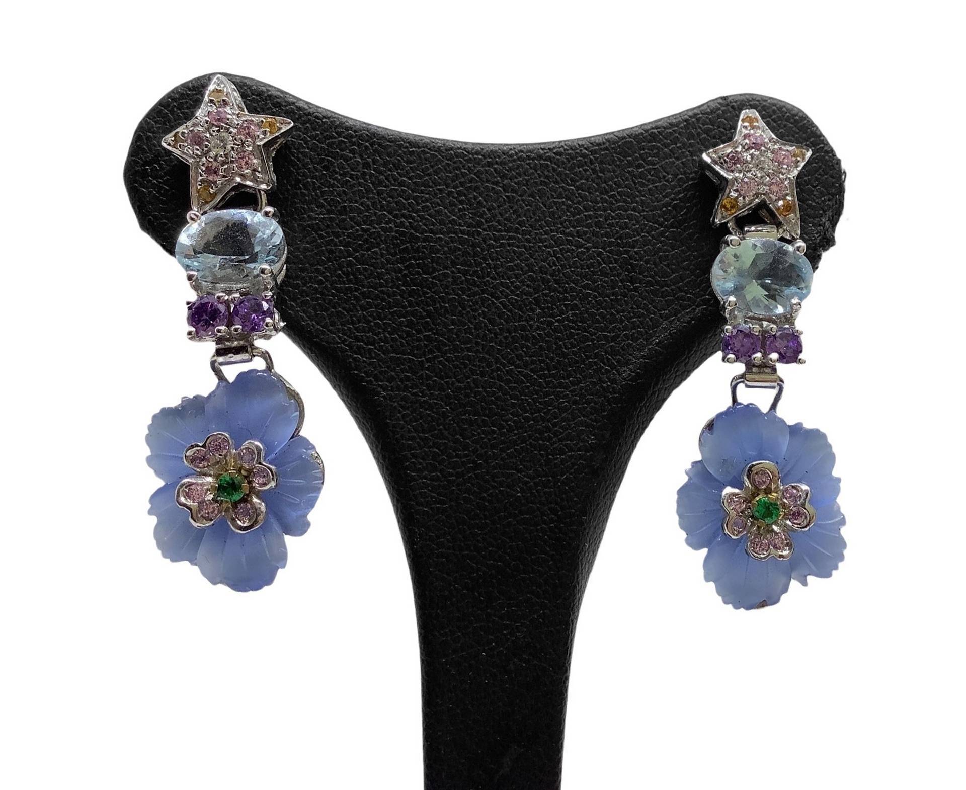 Orecchini pendenti fiori con smeraldi e brillanti cm 4 Orecchini pendenti fiori con smeraldi 0,10carati e brillanti 0,4 caratiOrecchini pendenti fiori con smeraldi 0,10carati e brillanti 0,4 carati