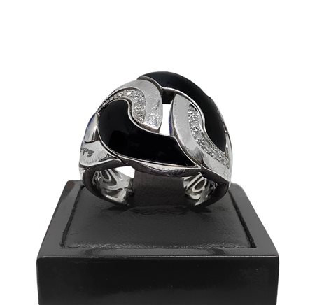 In oro bianco 18kt con diamanti taglio brillante e onice nero. Diamanti 0.17 G COLOR VS. Firmato in alto a destra.