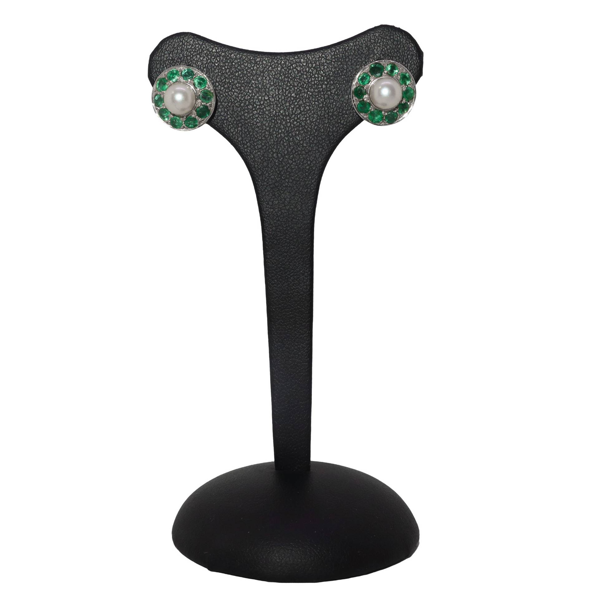 Orecchini in oro bianco con perla centrale e smeraldi a contorno gr 7.2