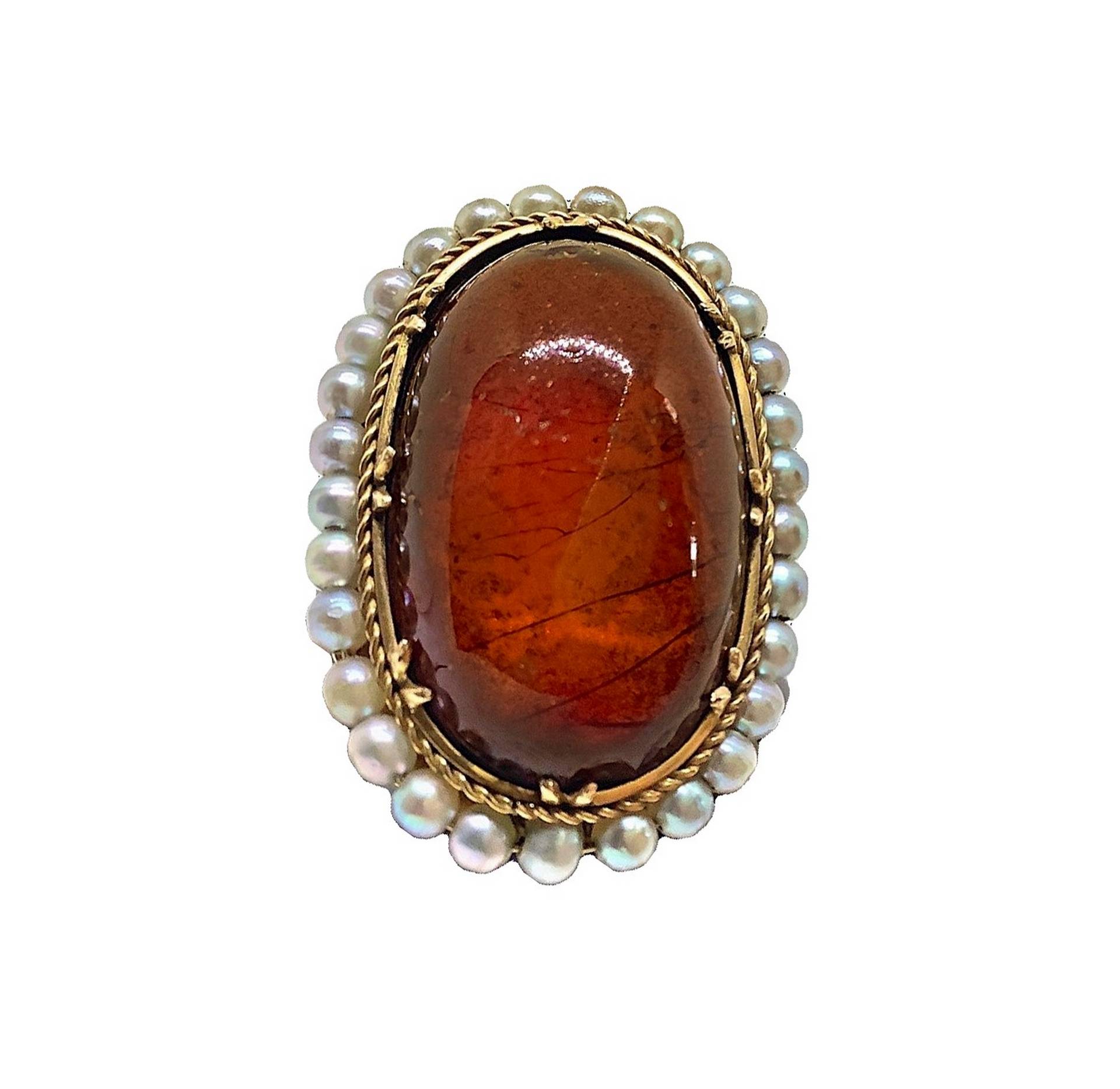 Anello con ovale in ambra contornato da perline mm 15 10,8 gr.10,8 gr.