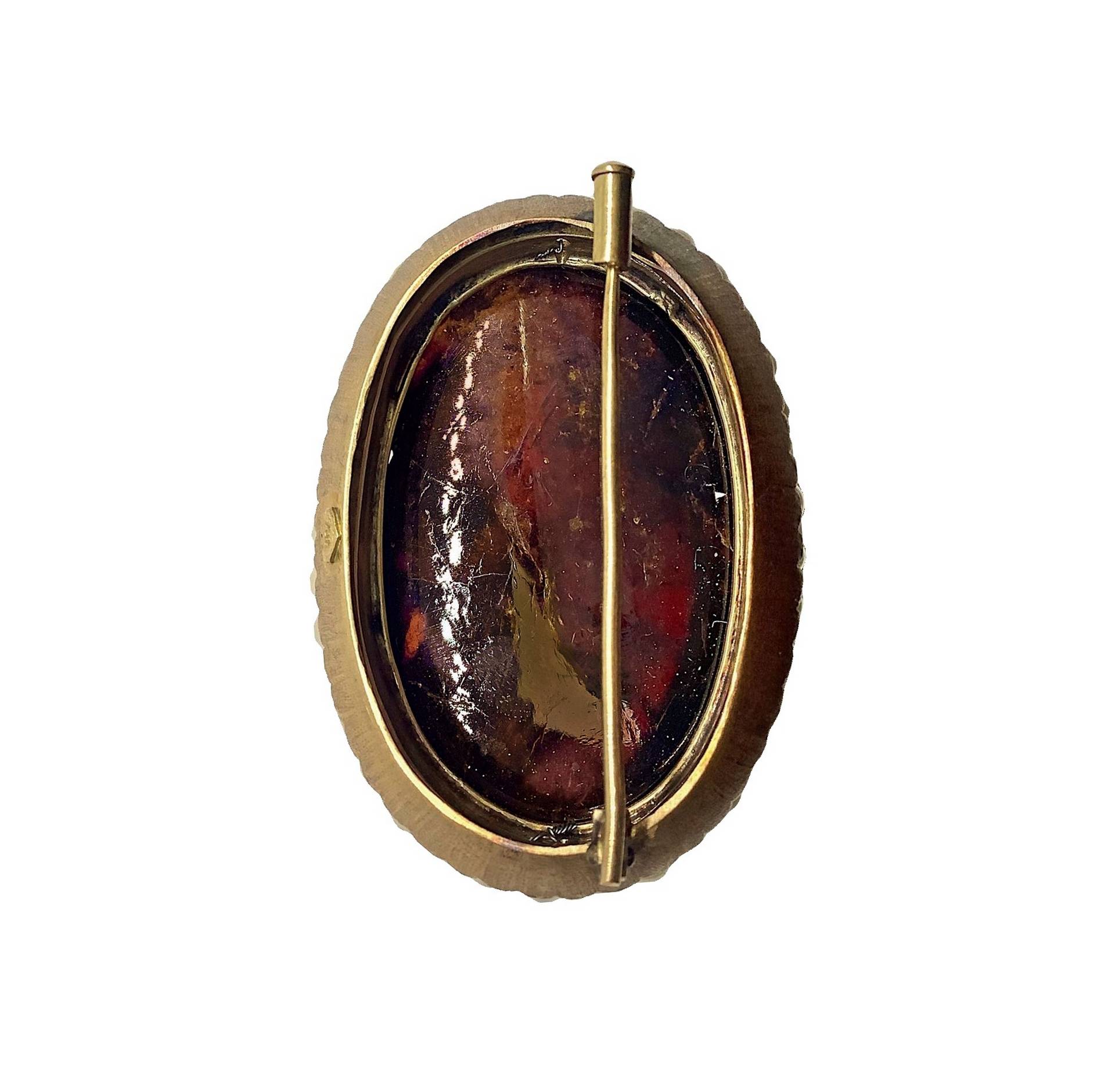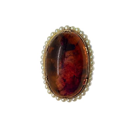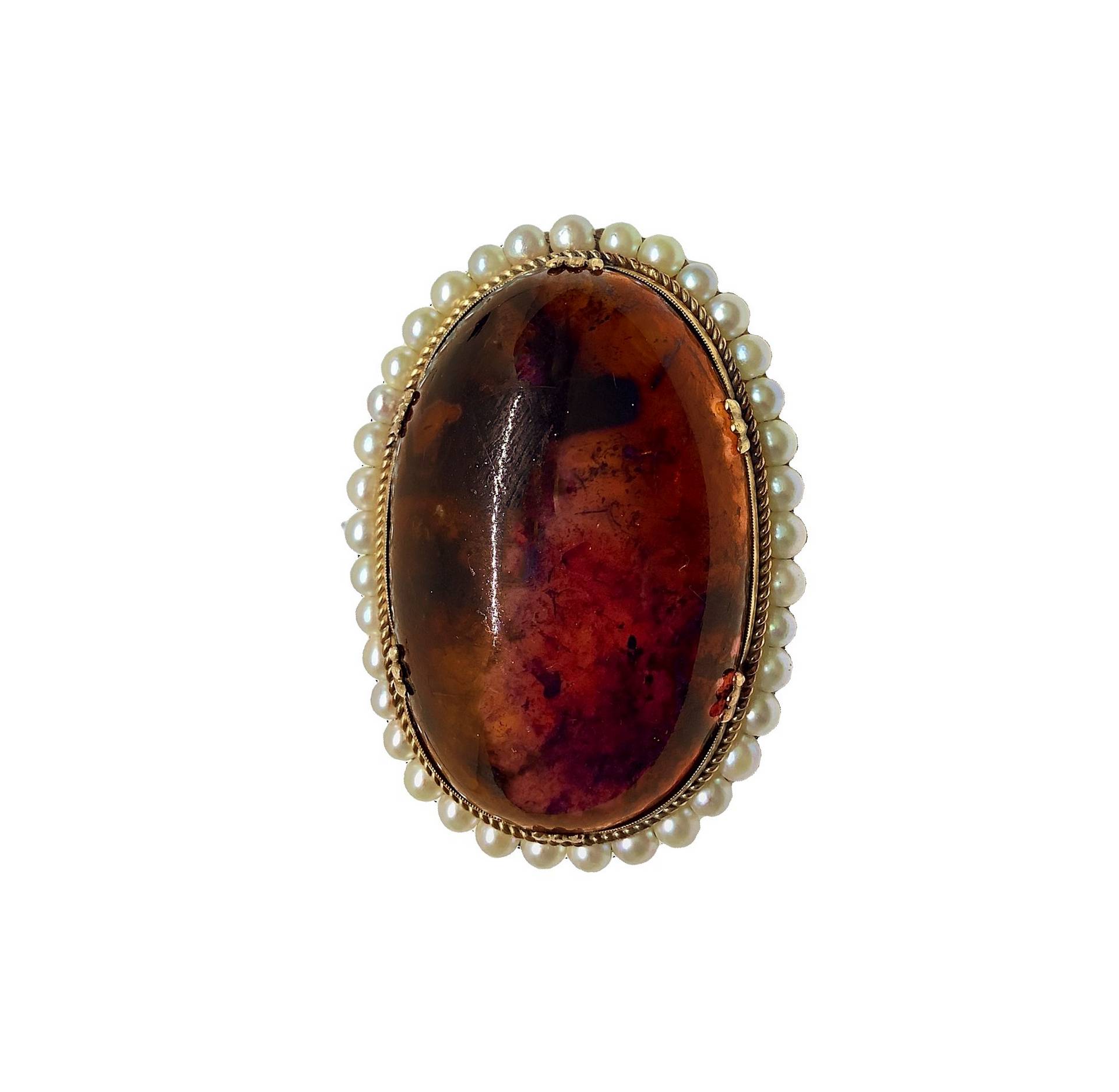 Spilla con ovale in ambra e contornata da perline h cm 4,7x 3,3 20,3 gr20,3 gr