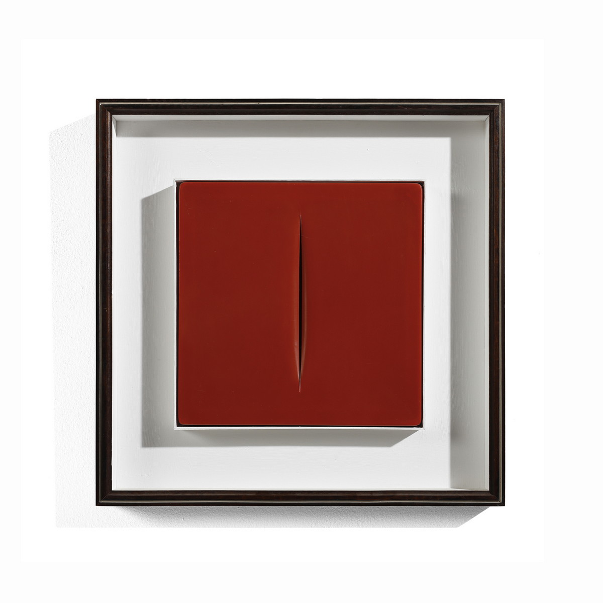 FONTANA LUCIO (1899 - 1968) CONCETTO SPAZIALE, 1968. Multiplo in PVC. Cm 29,50 x 29,50 x 2,00. L'opera è accompagnata dal volume Lucio Fontana, fotografato da Ugo Mulas.