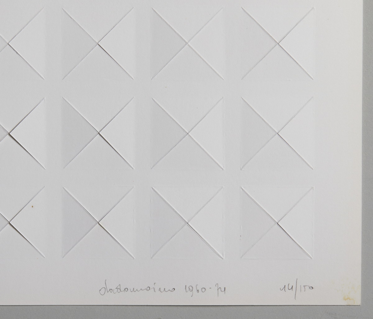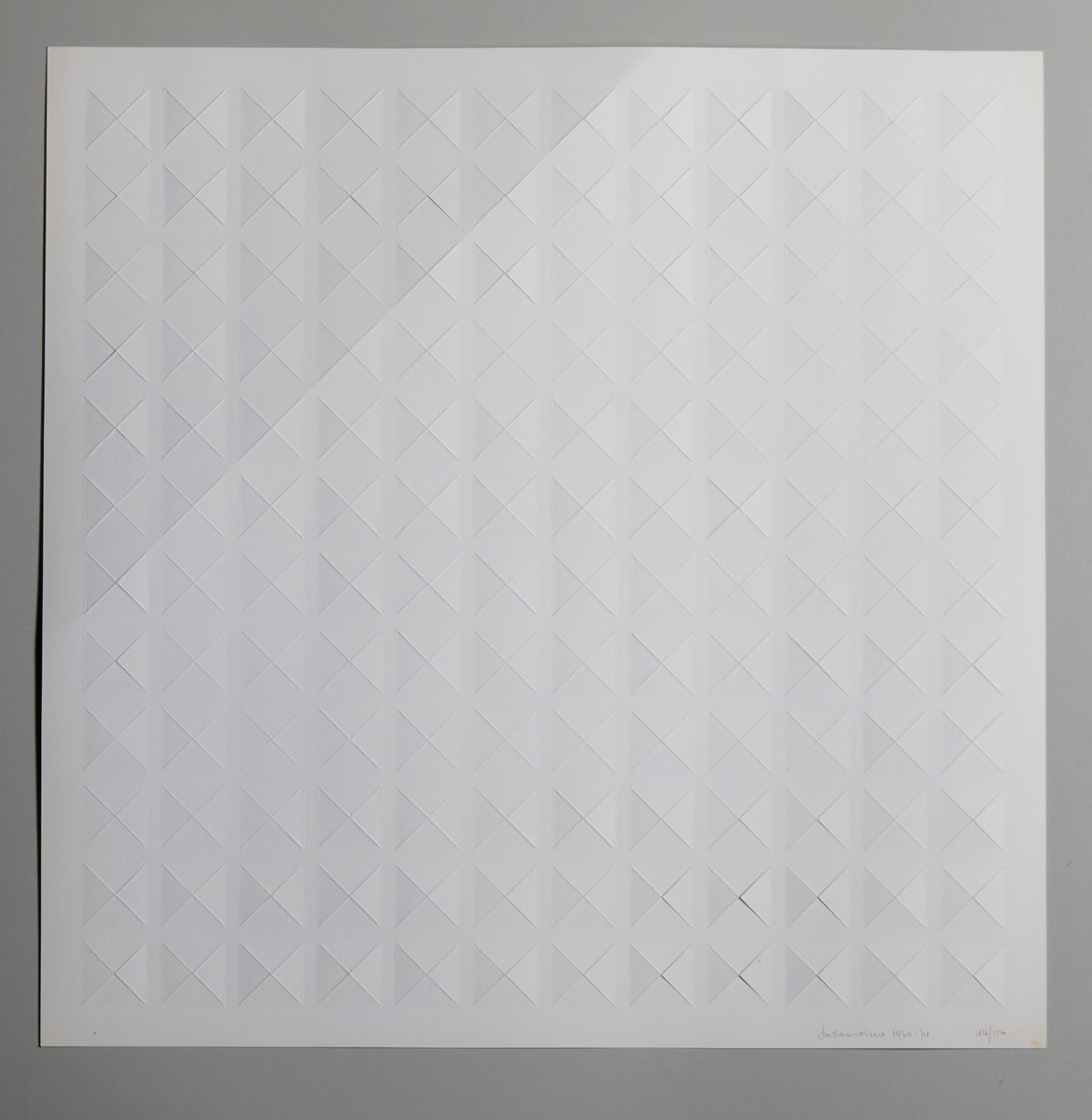 DADAMAINO (1935 - 2004) SENZA TITOLO, 1960-1974. Serigrafia su carta fustellata. Cm 50,00 x 50,00. tiratura, firma e data a matita, es. 14/150