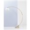 Lampada da terra ad una luce, struttura portante ad arco estendibile in alluminio dorato, diffusore semisferico in plexiglass bianco. Base in travertino.