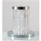 Lampada da tavolo a due luci con struttura in metallo cromato, corpo conico con diffusore composto da elementi conici sovrapposti in acrilico trasparente effetto ghiaccio, base circolare in acciaio cromato.