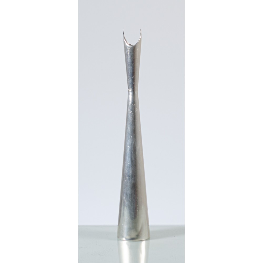 Vaso in lega argentata modello “Cardinale”, corpo biconico con strozzatura superiore, bocca arcata. Marchio di produzione incusso.