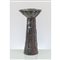 Vaso in ceramica smaltata invetriata e decorata in policromia e con smalti ossidati, corpo conico con collo semisferico. bocca informale piana. Firma e data. Restauri.
