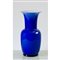 Vaso opalino in vetro soffiato color zaffiro, corpo ovalizzato con collo a tromba, bocca piana circolare, base in vetro nero. Riedizione del celebre vaso del 1932. Firma alla base e datati 2005.