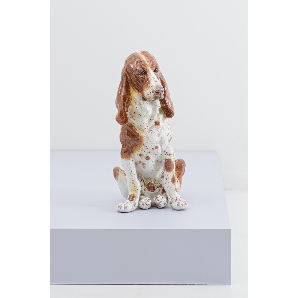 Scultura di cane Basset Haund in terracotta smaltata e decorata in policromia.