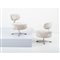 Coppia di poltrone con struttura in acciaio cromato, seduta e spalliera con imbottitura e rivestite con tessuto in simil pelliccia bianca.