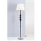 Lampada da terra ad una luce, struttura in metallo rivestita da elementi in vetro nera canna e a goccia. Base circolare in metallo cromato. Paralume in tessuto avorio.