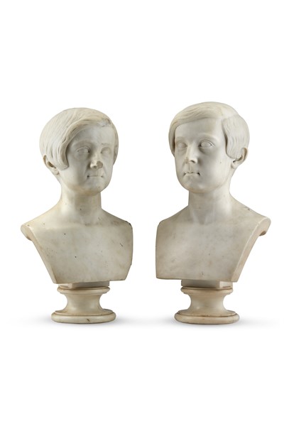 Ignoto del secolo XIX "Giovinetti" coppia di busti in marmo (cm 51x28) di cui