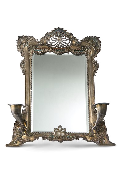 Table mirror with candle holder decorated in relief with flowers, leaves and festoons. Tiffany Sterling (32x40 cm) (defects)