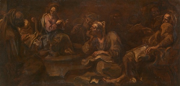 Alessandro Magnasco (attr.) "Cristo tra i dottori" olio su tela (bozzetto) (cm