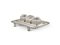 Silver inkwell with base on edge decorated with leaf scrolls and shell valve resting on four curling feet, three flasks in baccellate glass with lids and silver edges. Monogram "AR" engraved. London, 1808. Silversmith John Crouch (base cm 31x25) (g 1250) (defects)