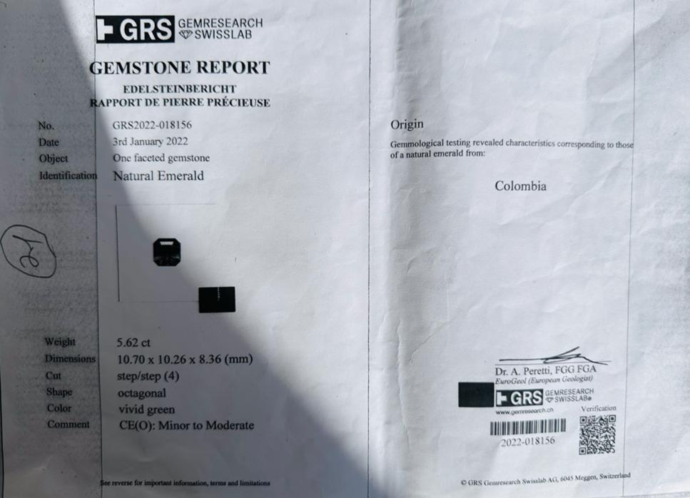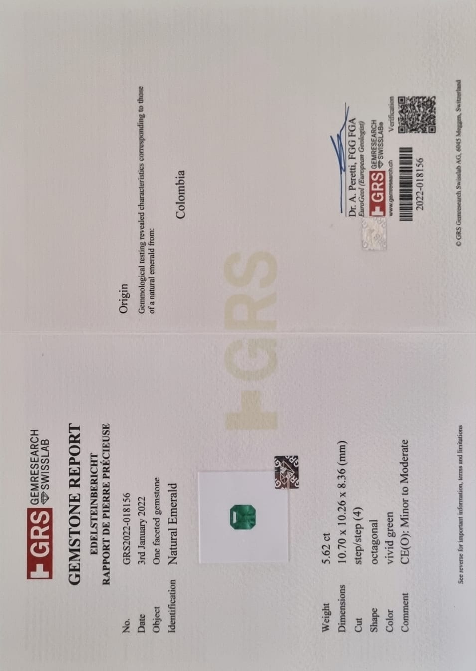 SMERALDO COLOMBIANO GRS 5,62 CT VERDE VIVIDO - GRS - ONP31204