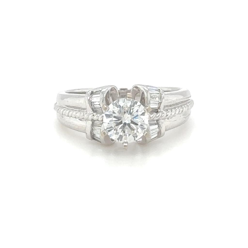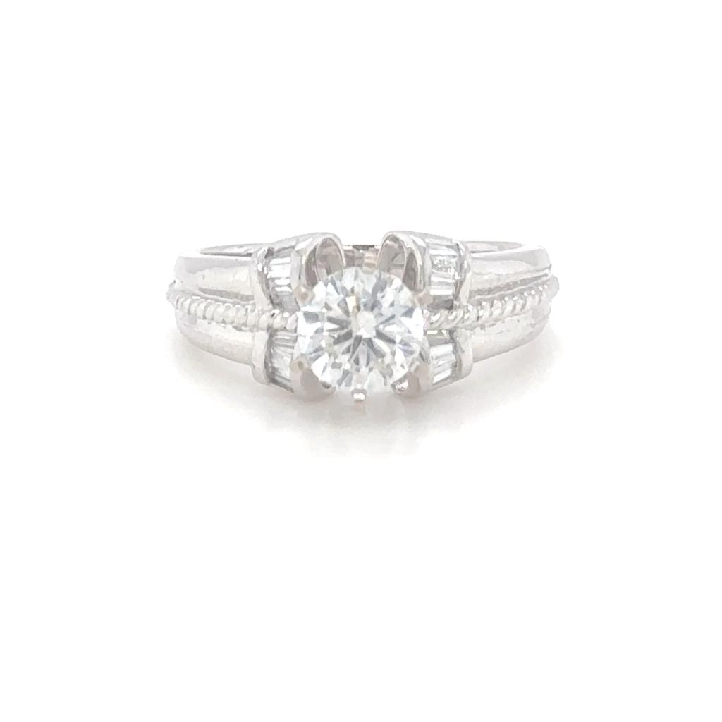 ANELLO IN PLATINO 7.20 GR CON DIAMANTE DA 1.01 CARATI COLORE E-F PUREZZA SI + BRILLANTI 0.12 CARATI COLORE F PUREZZA VS TAGLIA 7 CERTIFICATO GW - RNG30606