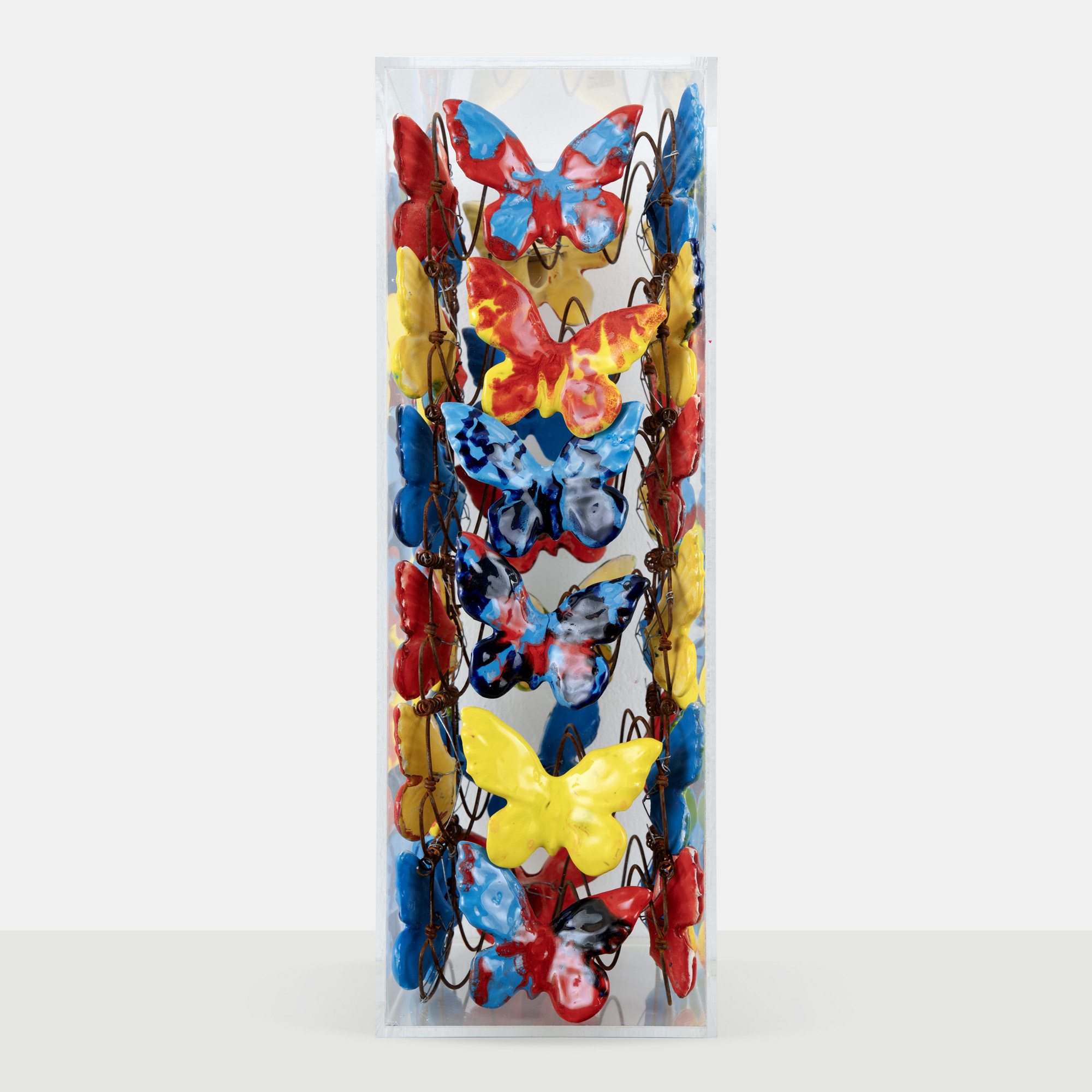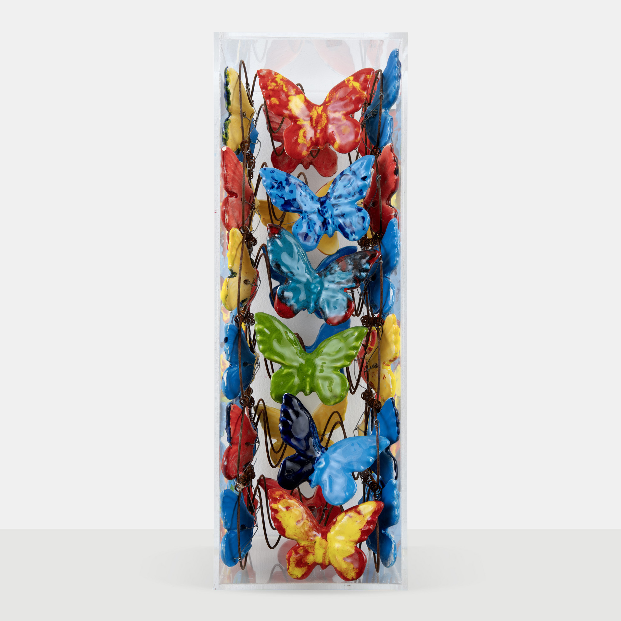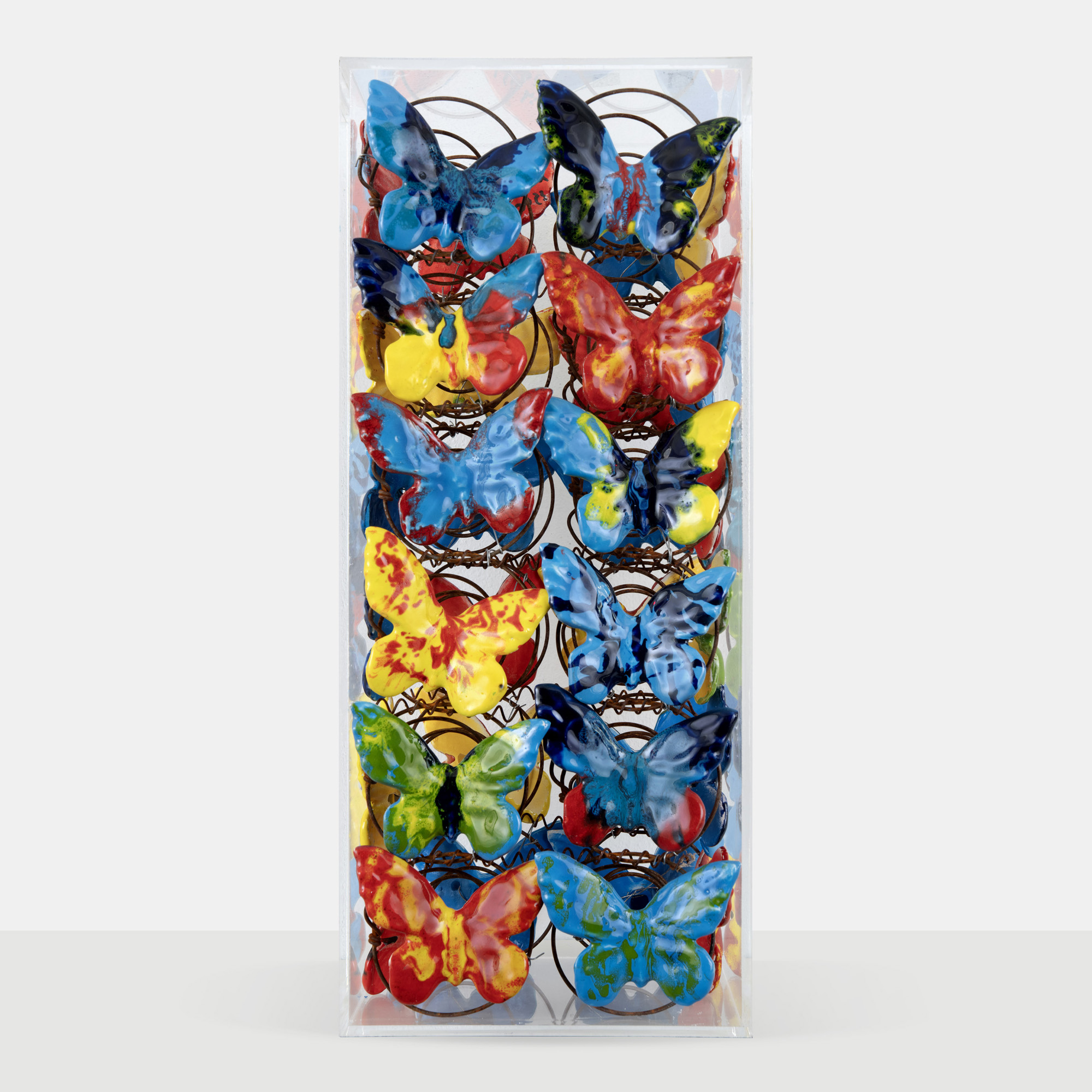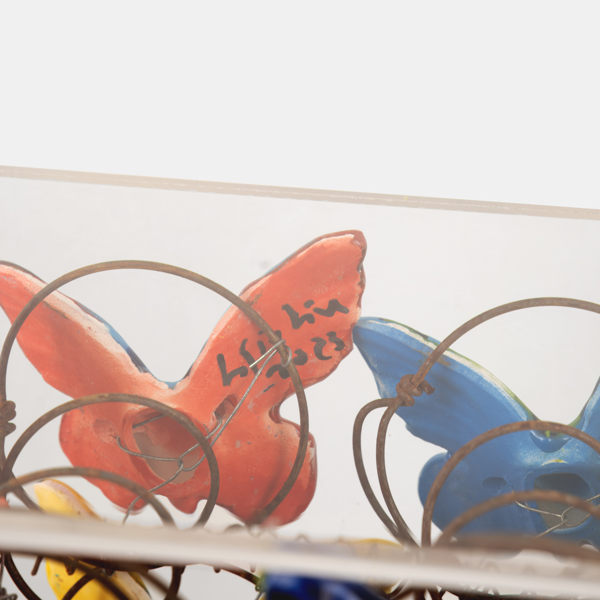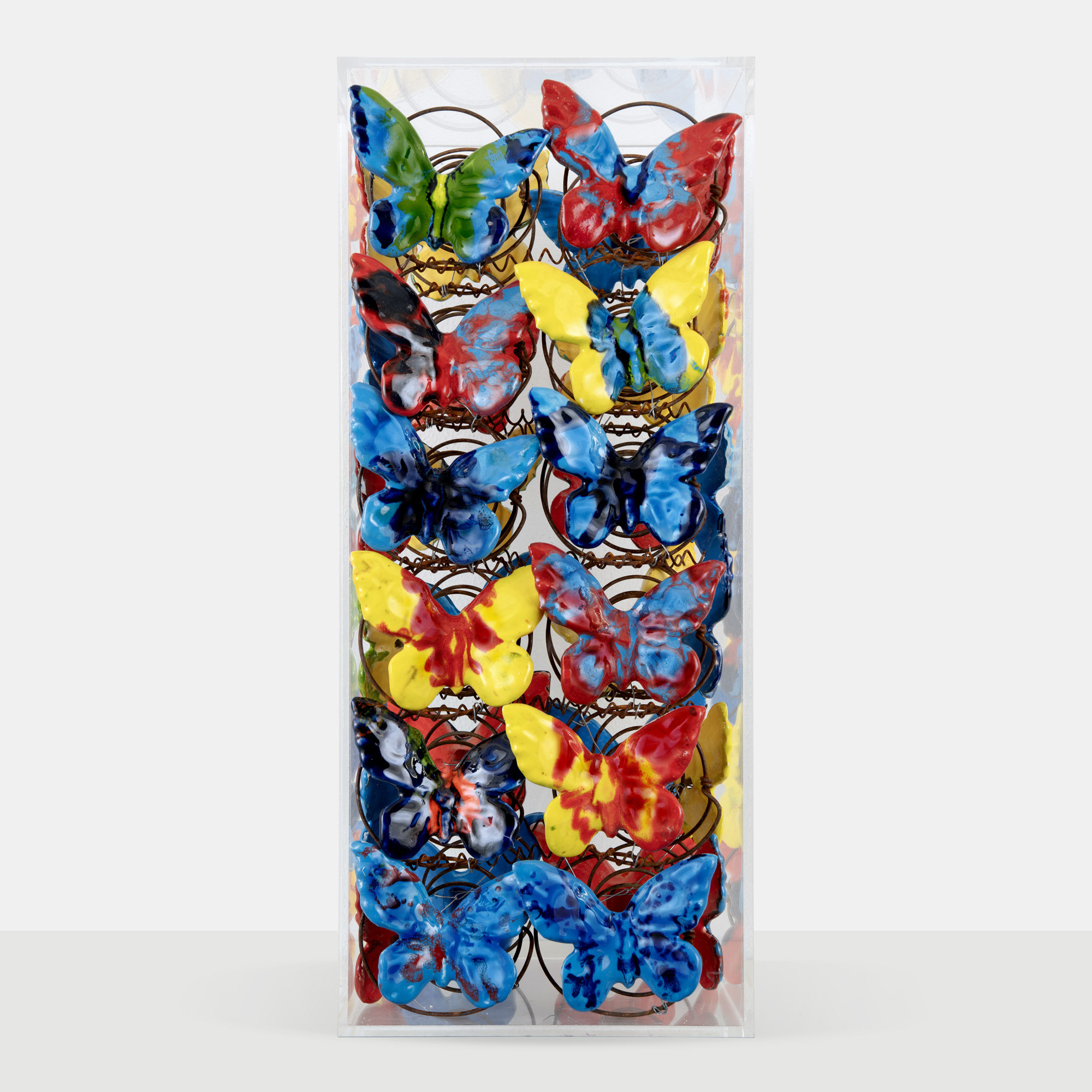 Assemblage di farfalle in ceramica in teca di plexiglas