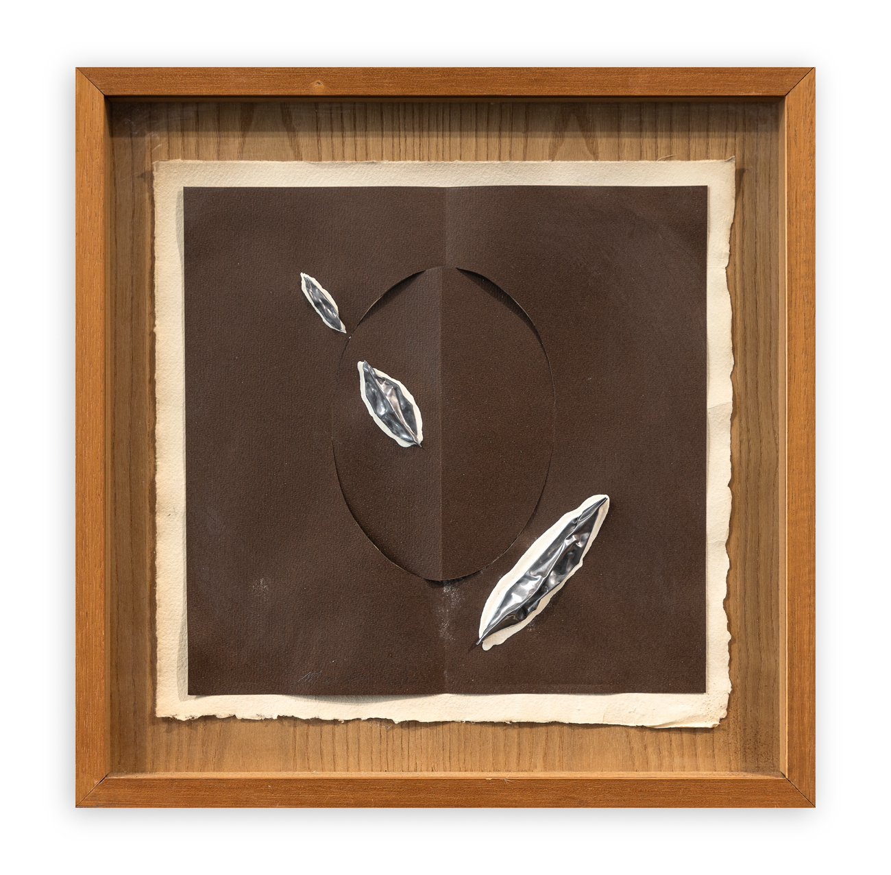 Tecnica mista e applicazioni su cartoncino piegato e intagliato applicato su cartoncino a mano entro cornice originale a cassetta in legno